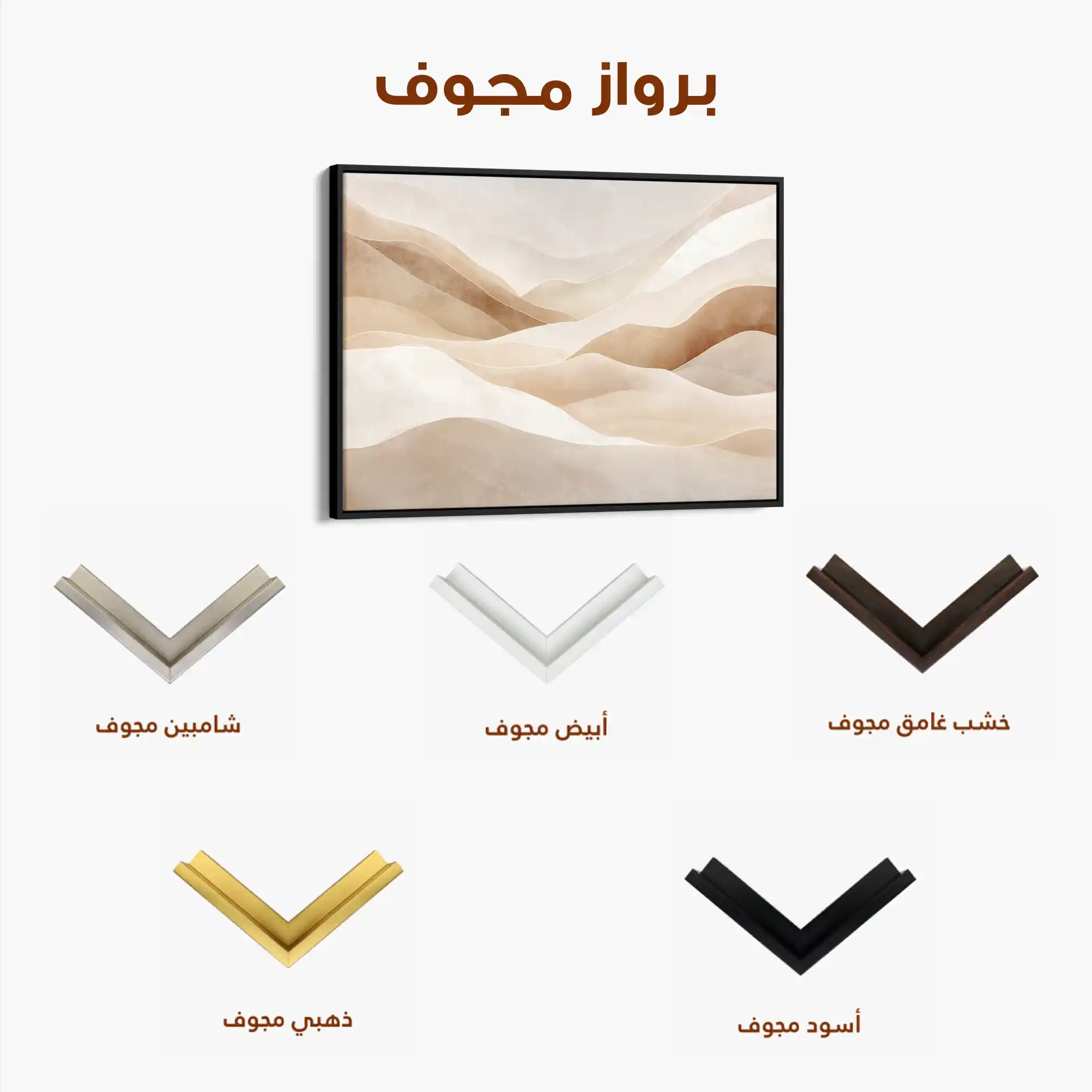 • الإطار (مجوف): إطار نحيف بفراغ رفيع يحيط باللوحة ليُبرز الحافة ويمنح ظلاً خفيفاً وإحساس صالات العرض؛ يصل جاهزاً للتعليق.