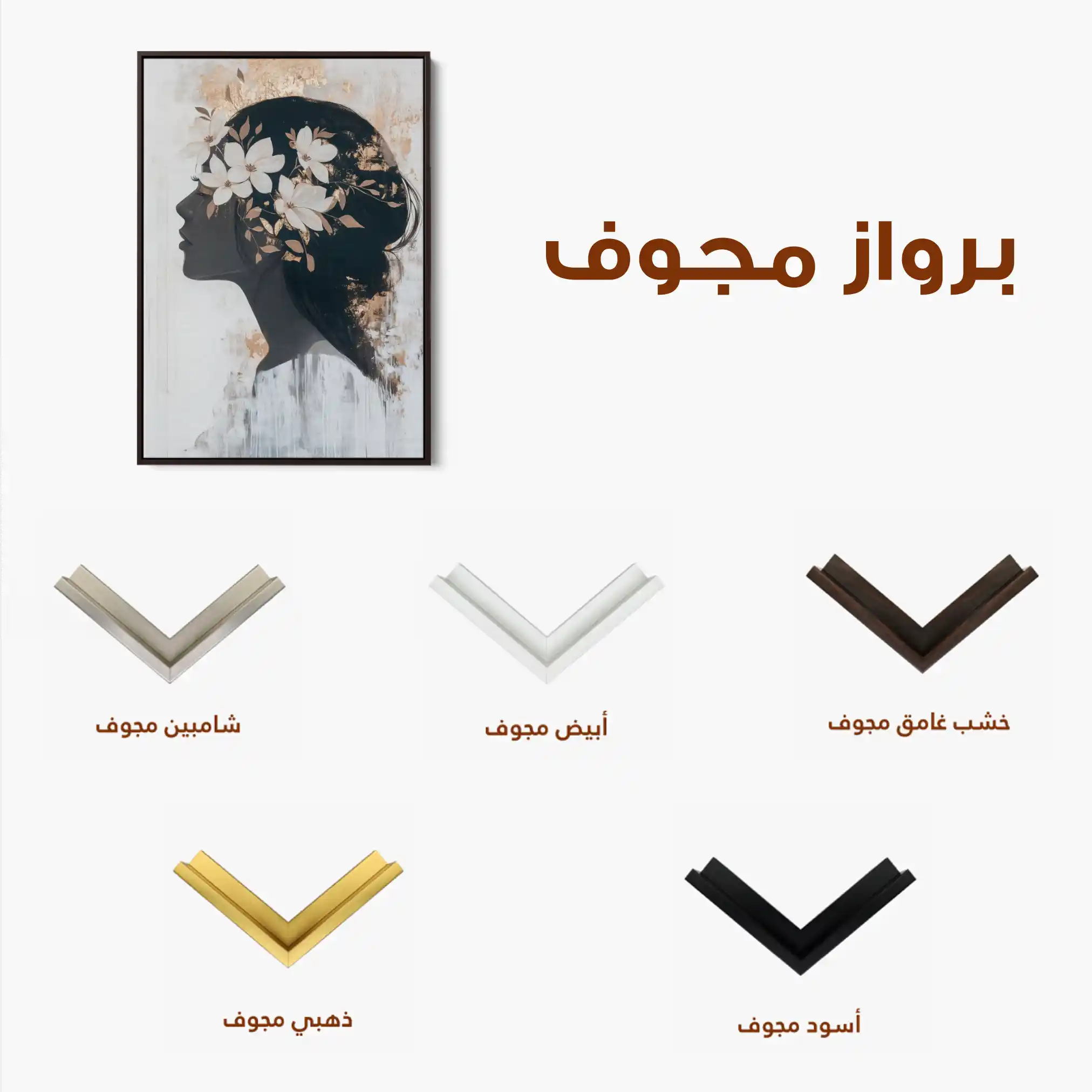 • الإطار (مجوف): إطار نحيف بفراغ رفيع يحيط باللوحة ليُبرز الحافة ويمنح ظلاً خفيفاً وإحساس صالات العرض؛ يصل جاهزاً للتعليق.