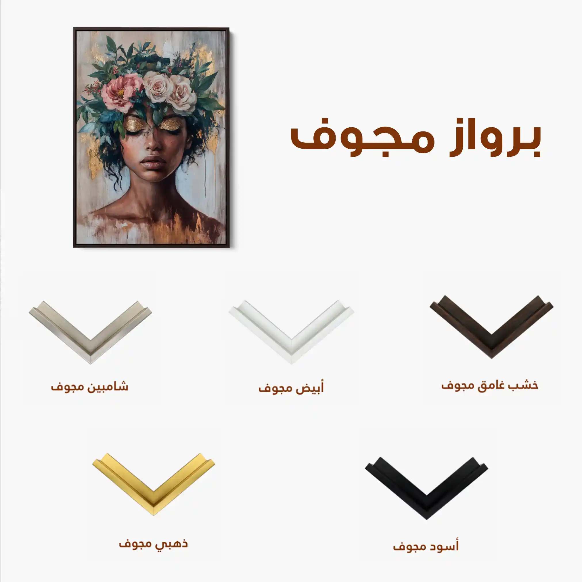 • الإطار (مجوف): إطار نحيف بفراغ رفيع يحيط باللوحة ليُبرز الحافة ويمنح ظلاً خفيفاً وإحساس صالات العرض؛ يصل جاهزاً للتعليق.