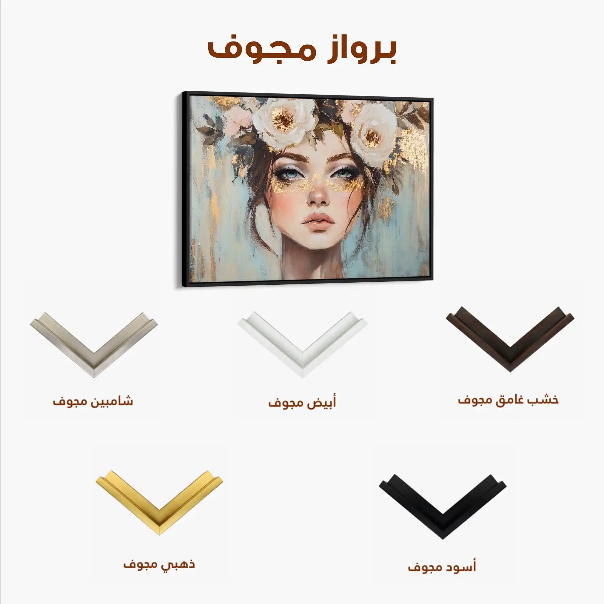 • الإطار (مجوف): إطار نحيف بفراغ رفيع يحيط باللوحة ليُبرز الحافة ويمنح ظلاً خفيفاً وإحساس صالات العرض؛ يصل جاهزاً للتعليق.