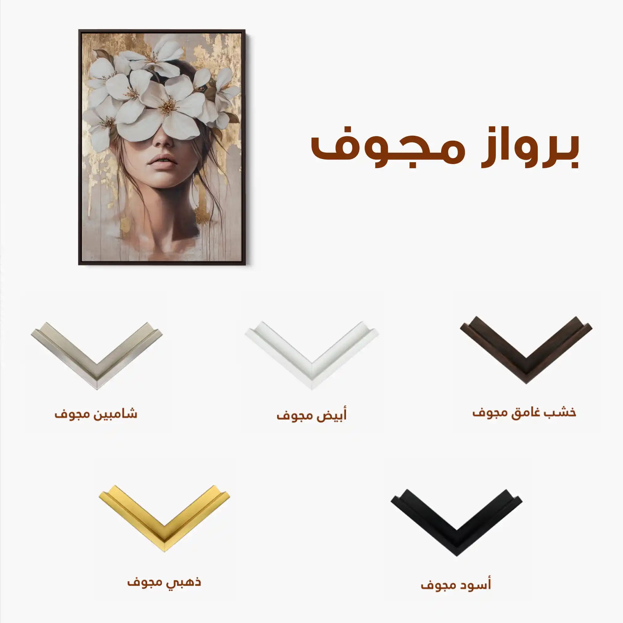 • الإطار (مجوف): إطار نحيف بفراغ رفيع يحيط باللوحة ليُبرز الحافة ويمنح ظلاً خفيفاً وإحساس صالات العرض؛ يصل جاهزاً للتعليق.