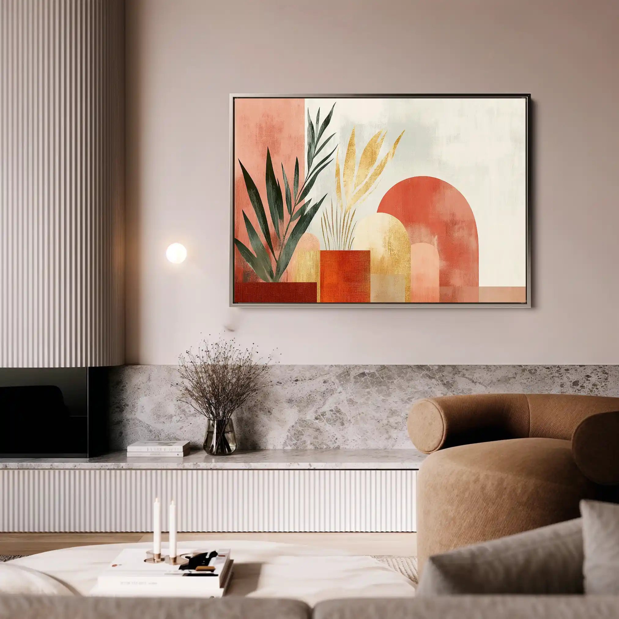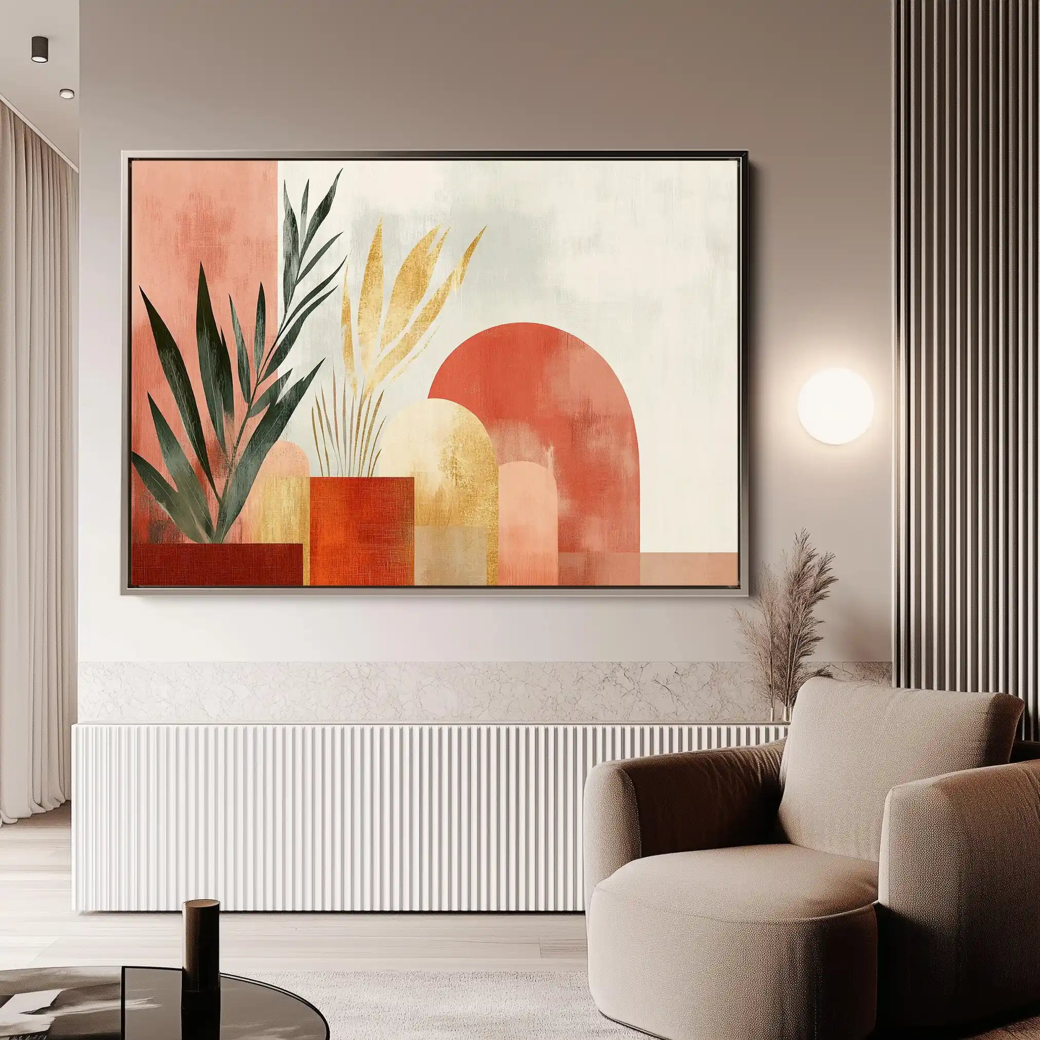 Modern wall art with quiet luxury. Museum-grade printing on 410gsm cotton canvas, set in a slim floater frame—clean, calm, ready to hang.