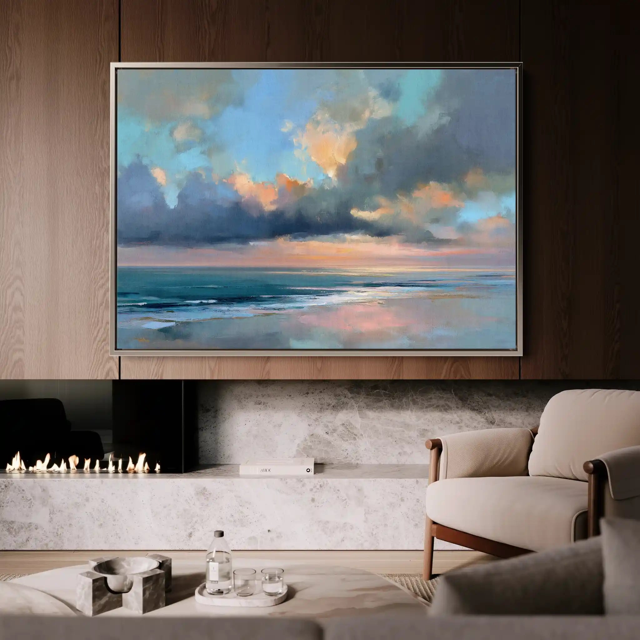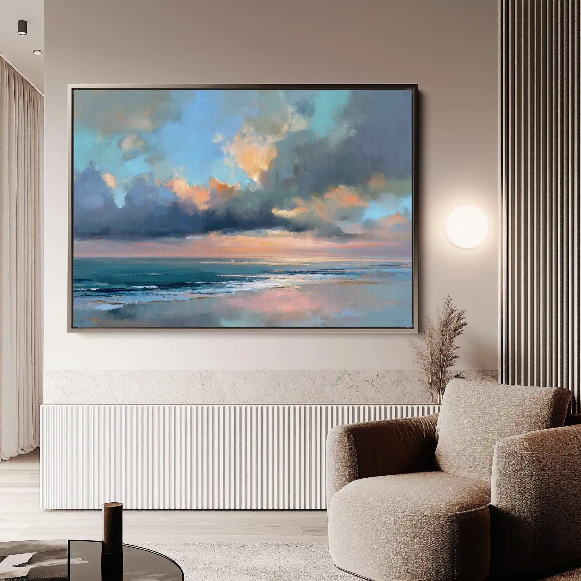 Modern wall art with quiet luxury. Museum-grade printing on 410gsm cotton canvas, set in a slim floater frame—clean, calm, ready to hang.