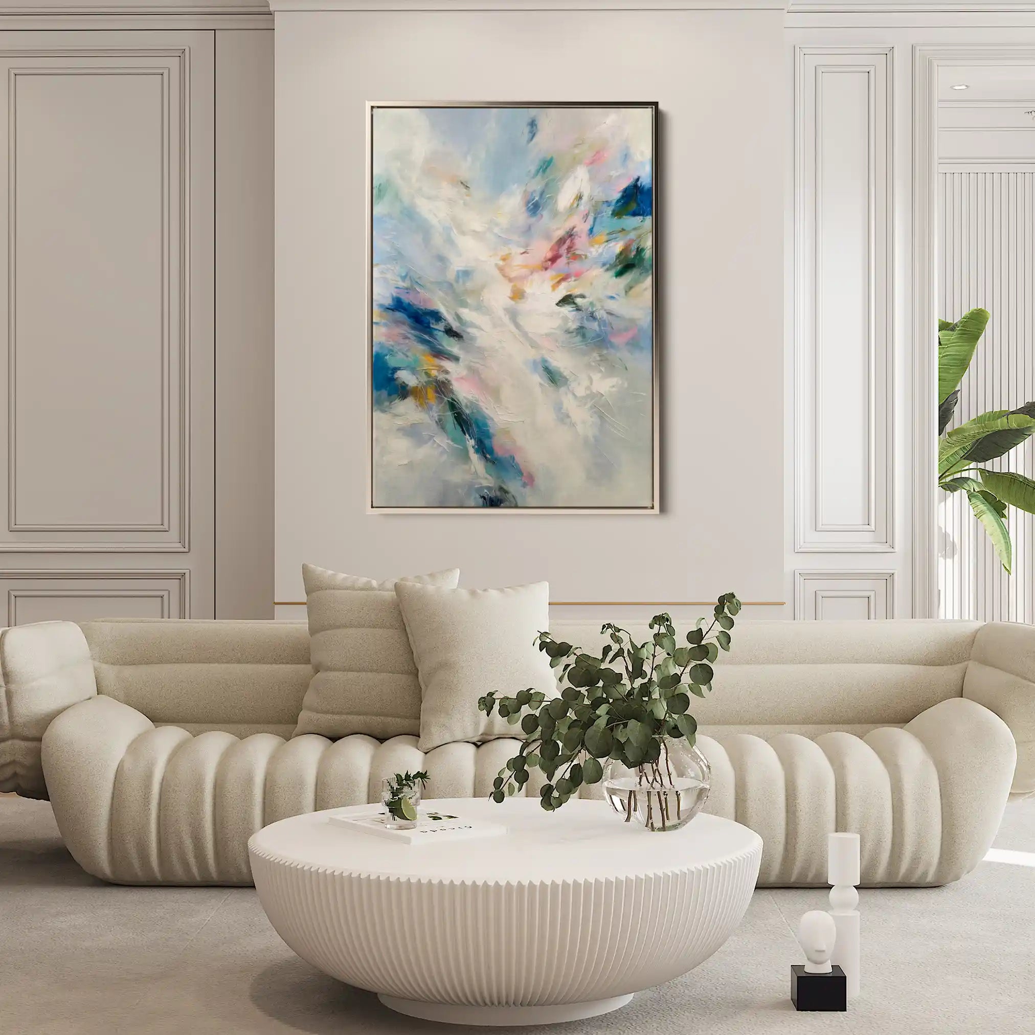 Modern wall art with quiet luxury. Museum-grade printing on 410gsm cotton canvas, set in a slim floater frame—clean, calm, ready to hang.