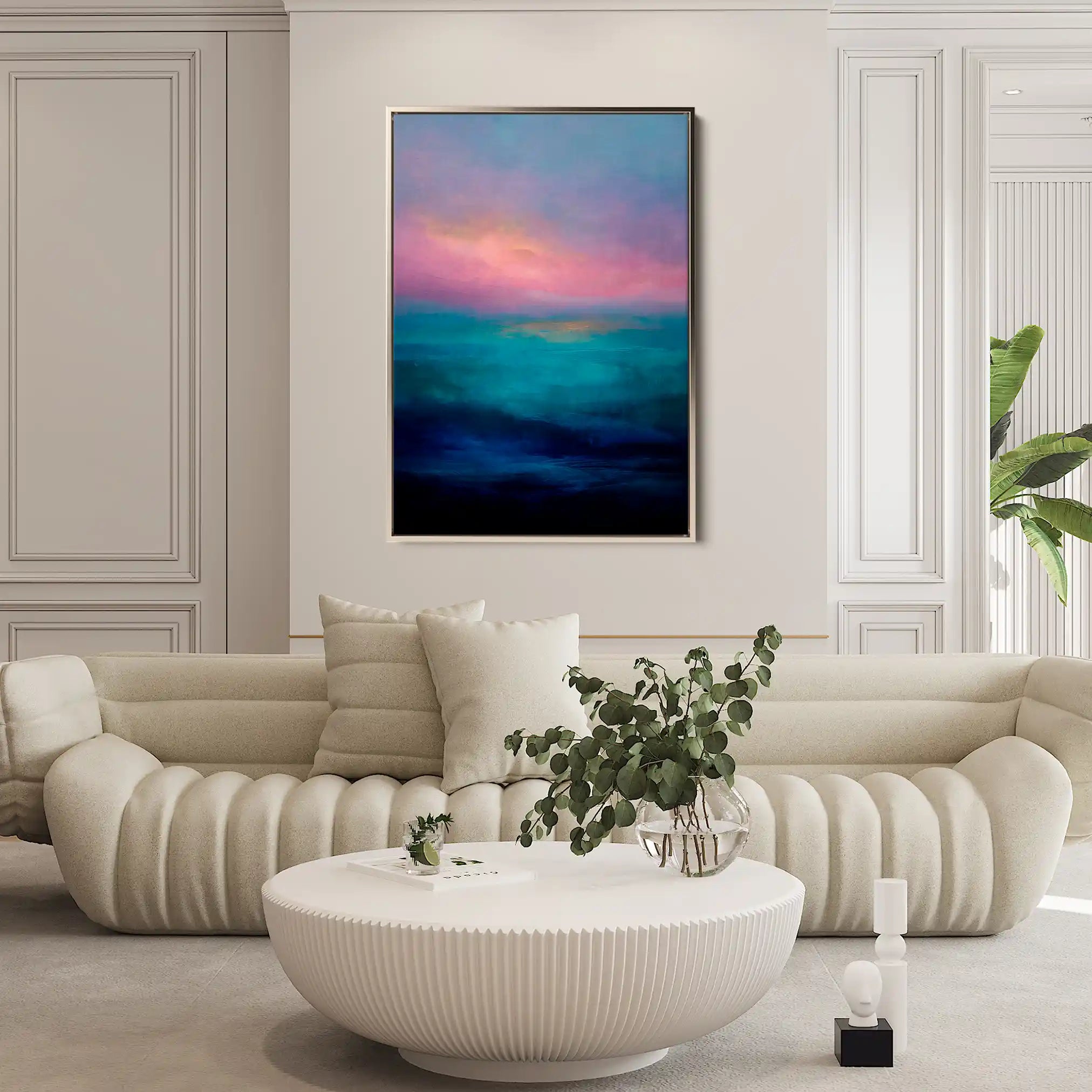 Modern wall art with quiet luxury. Museum-grade printing on 410gsm cotton canvas, set in a slim floater frame—clean, calm, ready to hang.