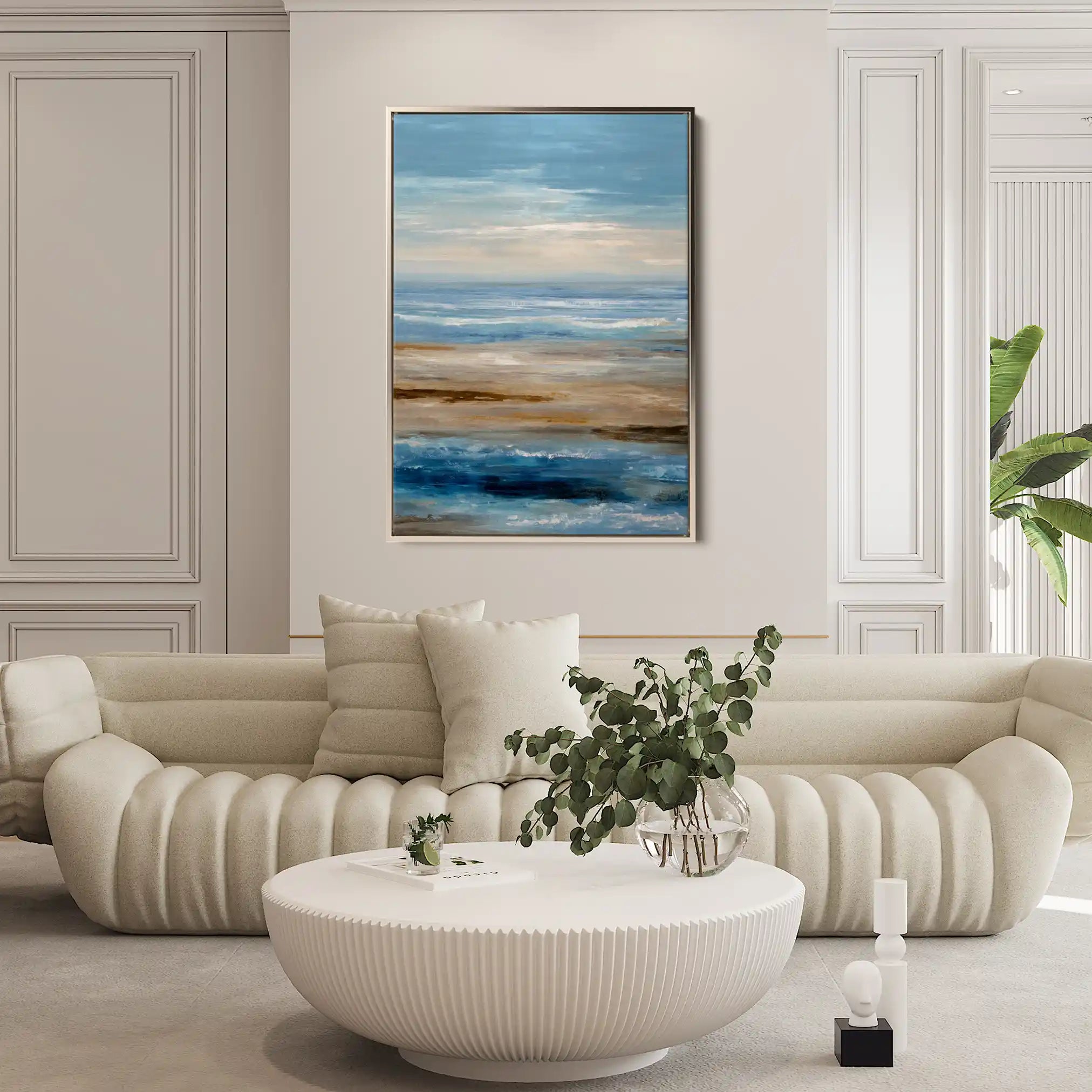 Modern wall art with quiet luxury. Museum-grade printing on 410gsm cotton canvas, set in a slim floater frame—clean, calm, ready to hang.