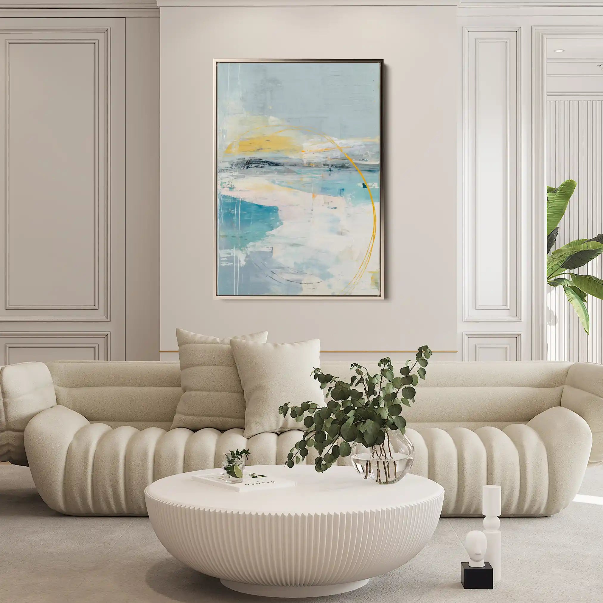 Modern wall art with quiet luxury. Museum-grade printing on 410gsm cotton canvas, set in a slim floater frame—clean, calm, ready to hang.
