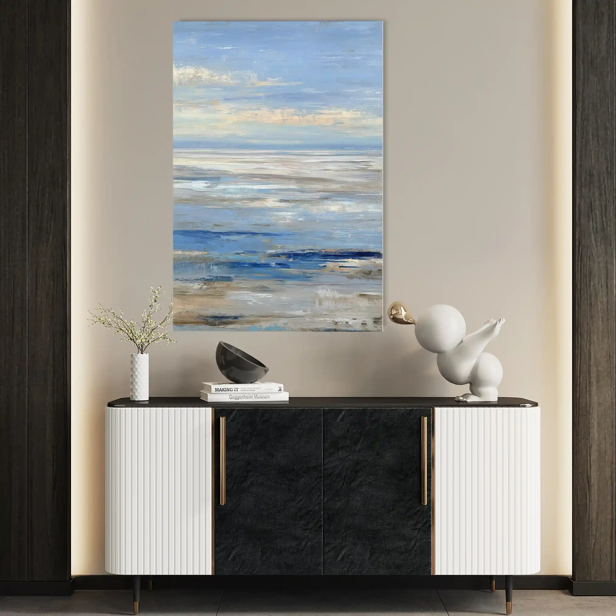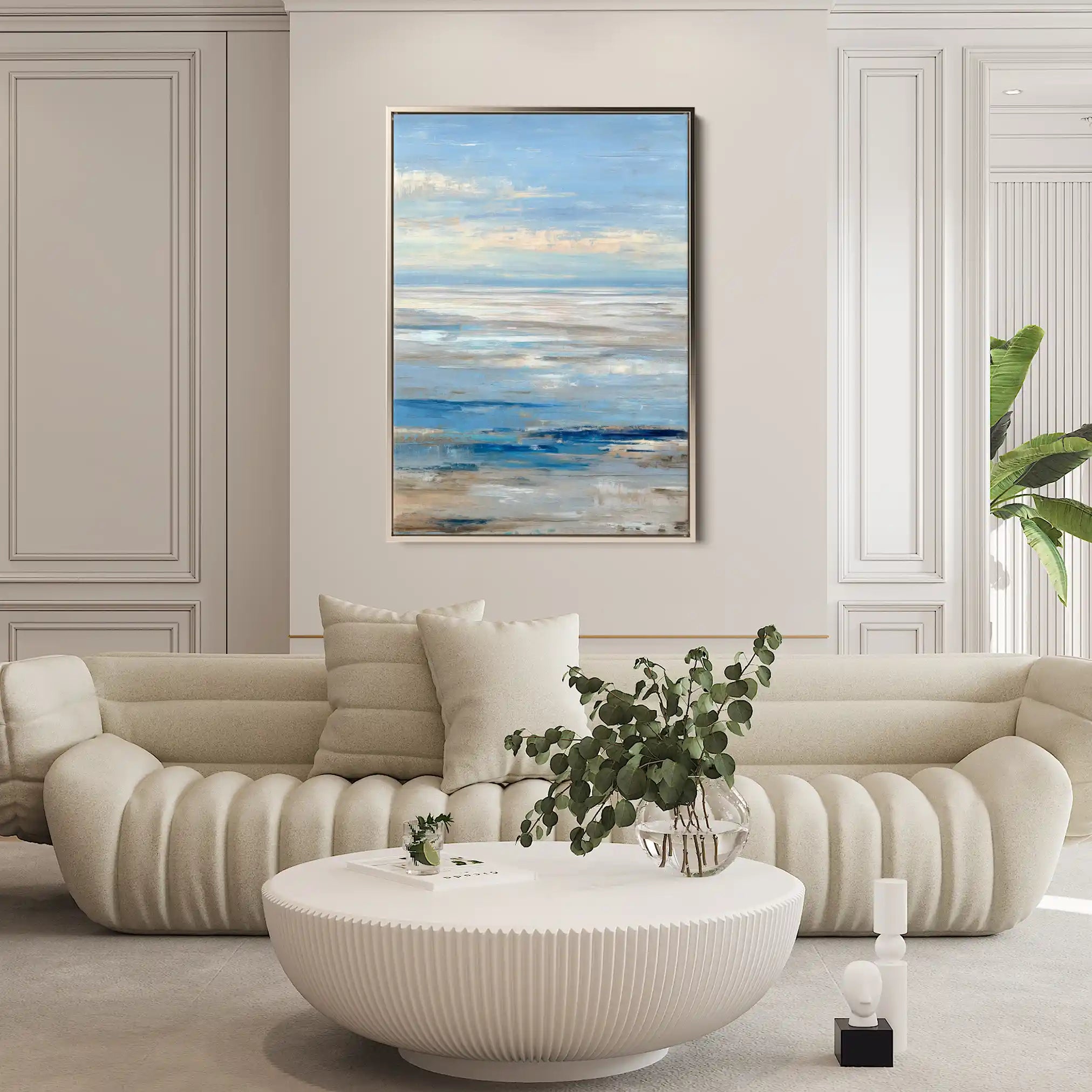 Modern wall art with quiet luxury. Museum-grade printing on 410gsm cotton canvas, set in a slim floater frame—clean, calm, ready to hang.