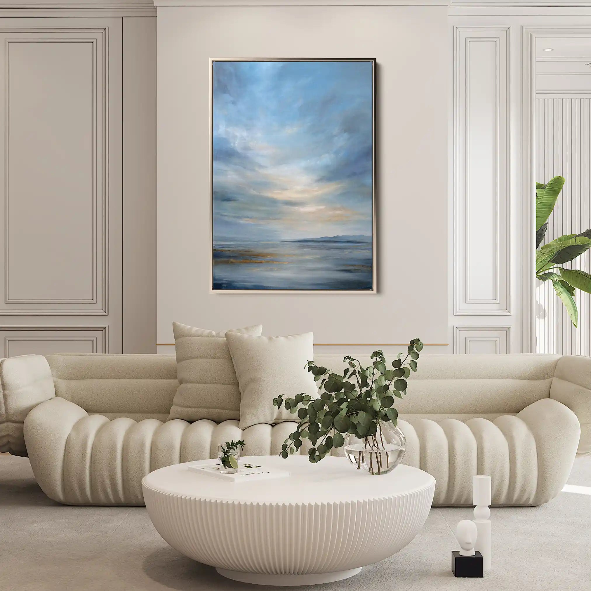 Modern wall art with quiet luxury. Museum-grade printing on 410gsm cotton canvas, set in a slim floater frame—clean, calm, ready to hang.