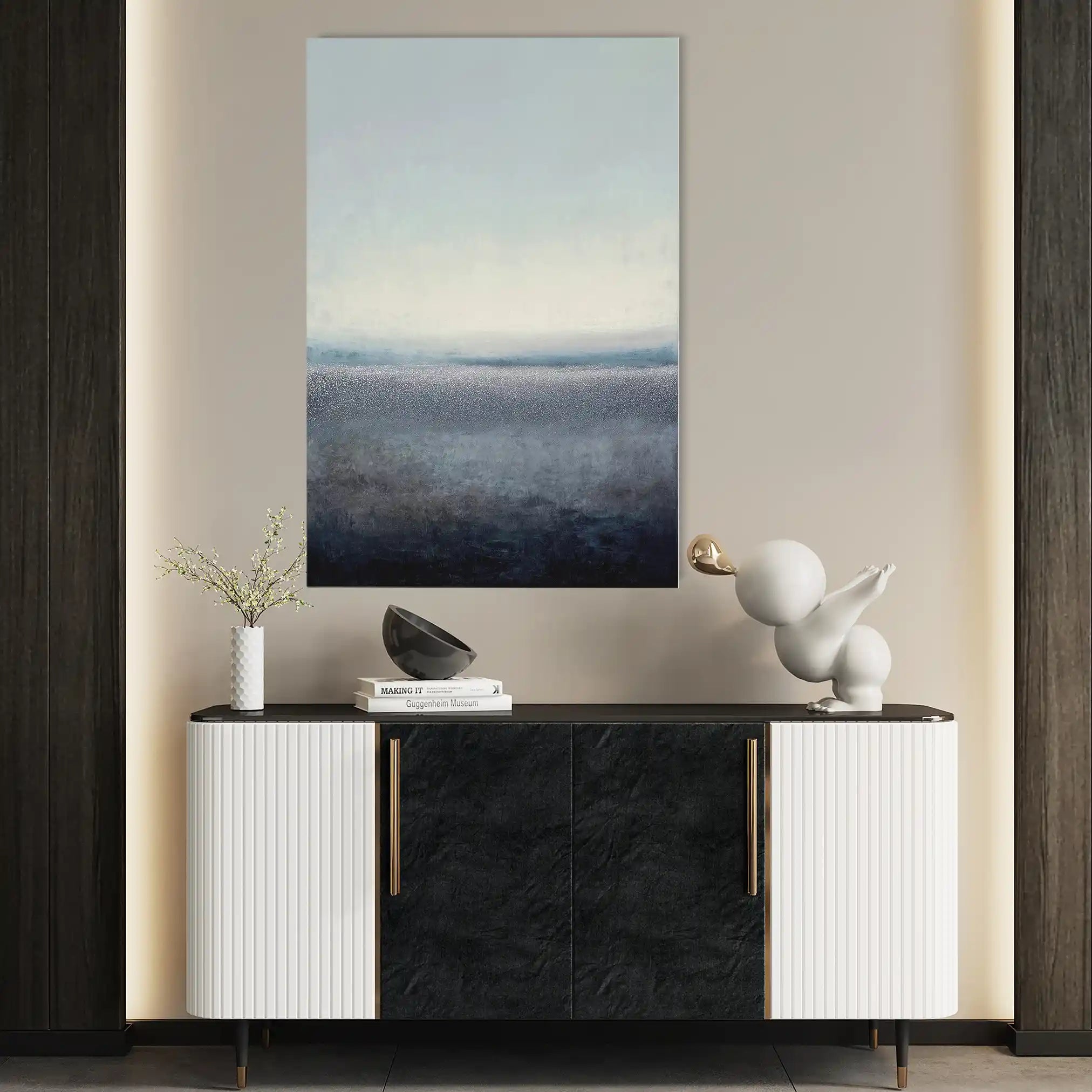 Modern wall art with quiet luxury. Museum-grade printing on 410gsm cotton canvas, set in a slim floater frame—clean, calm, ready to hang.