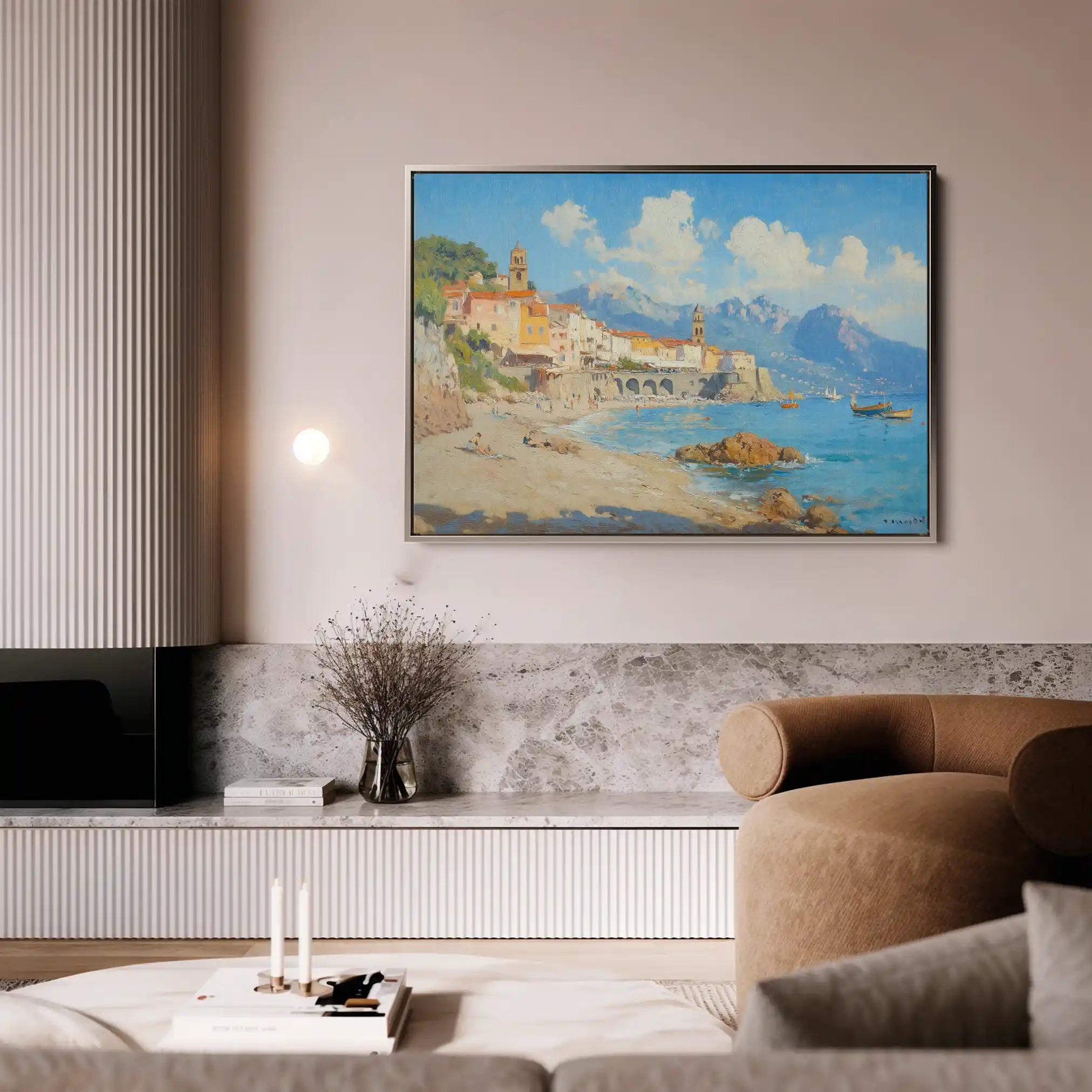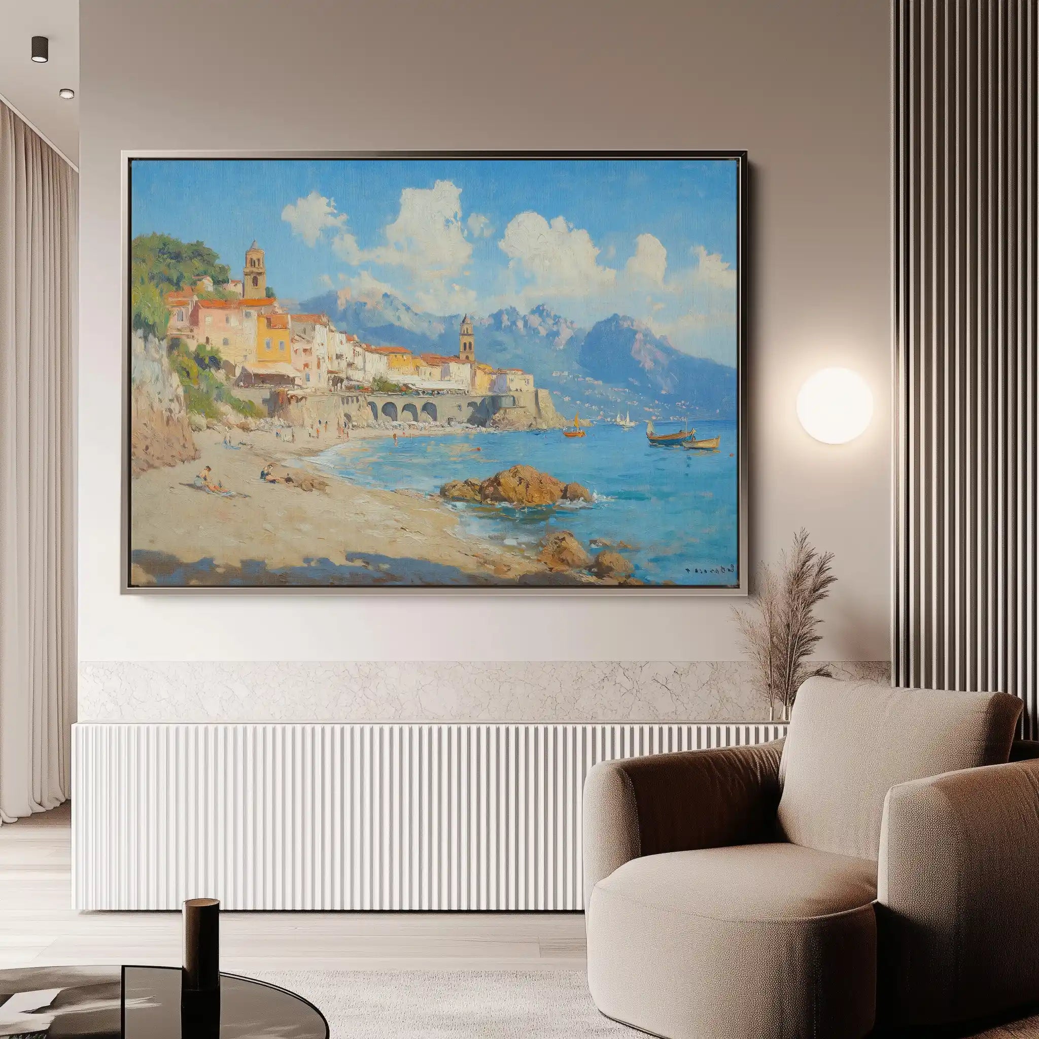 Modern wall art with quiet luxury. Museum-grade printing on 410gsm cotton canvas, set in a slim floater frame—clean, calm, ready to hang.