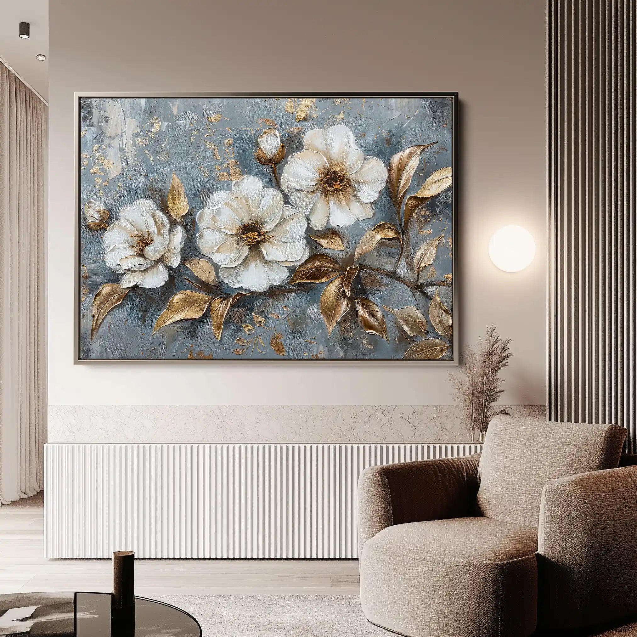 Modern wall art with quiet luxury. Museum-grade printing on 410gsm cotton canvas, set in a slim floater frame—clean, calm, ready to hang.
