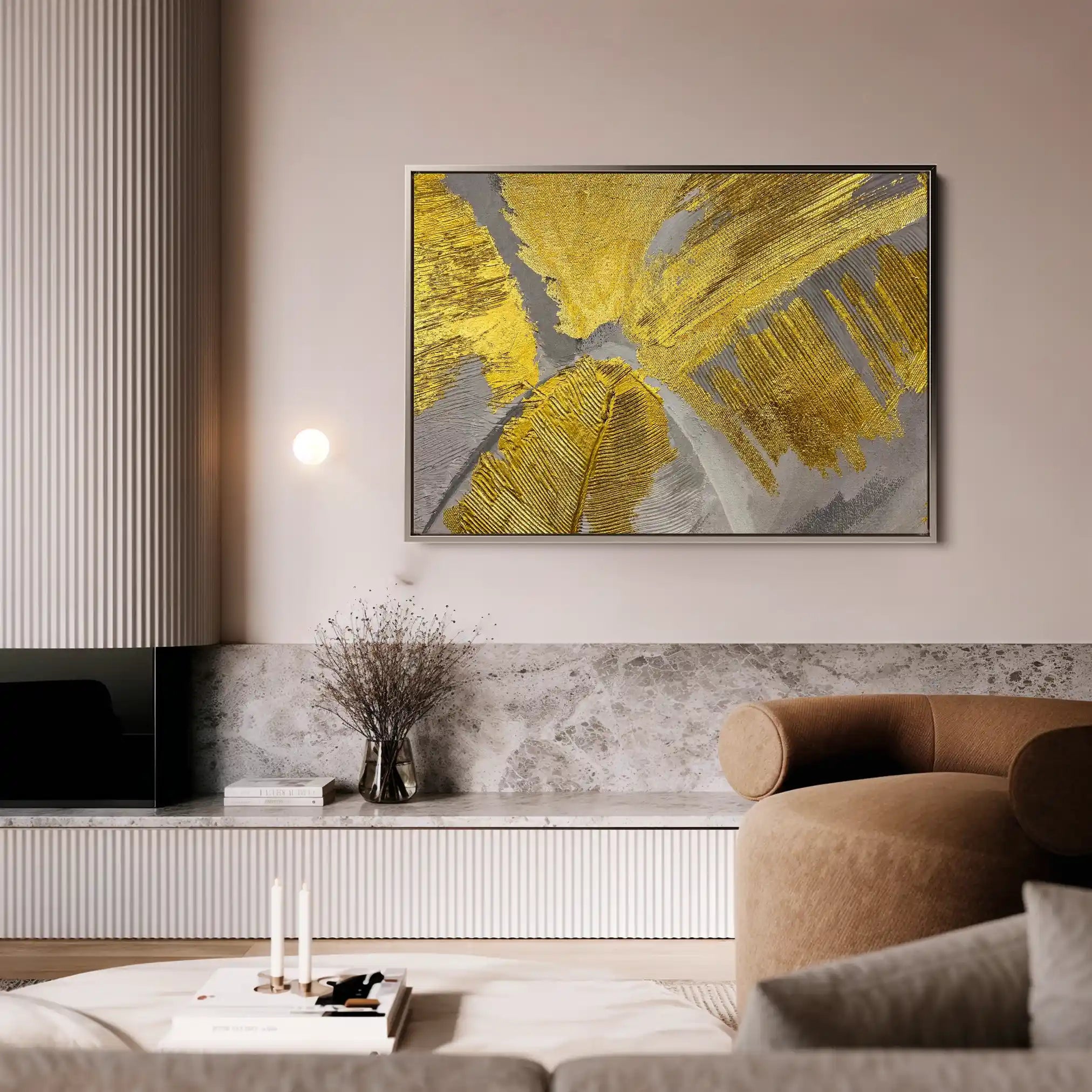 Modern wall art with quiet luxury. Museum-grade printing on 410gsm cotton canvas, set in a slim floater frame—clean, calm, ready to hang.