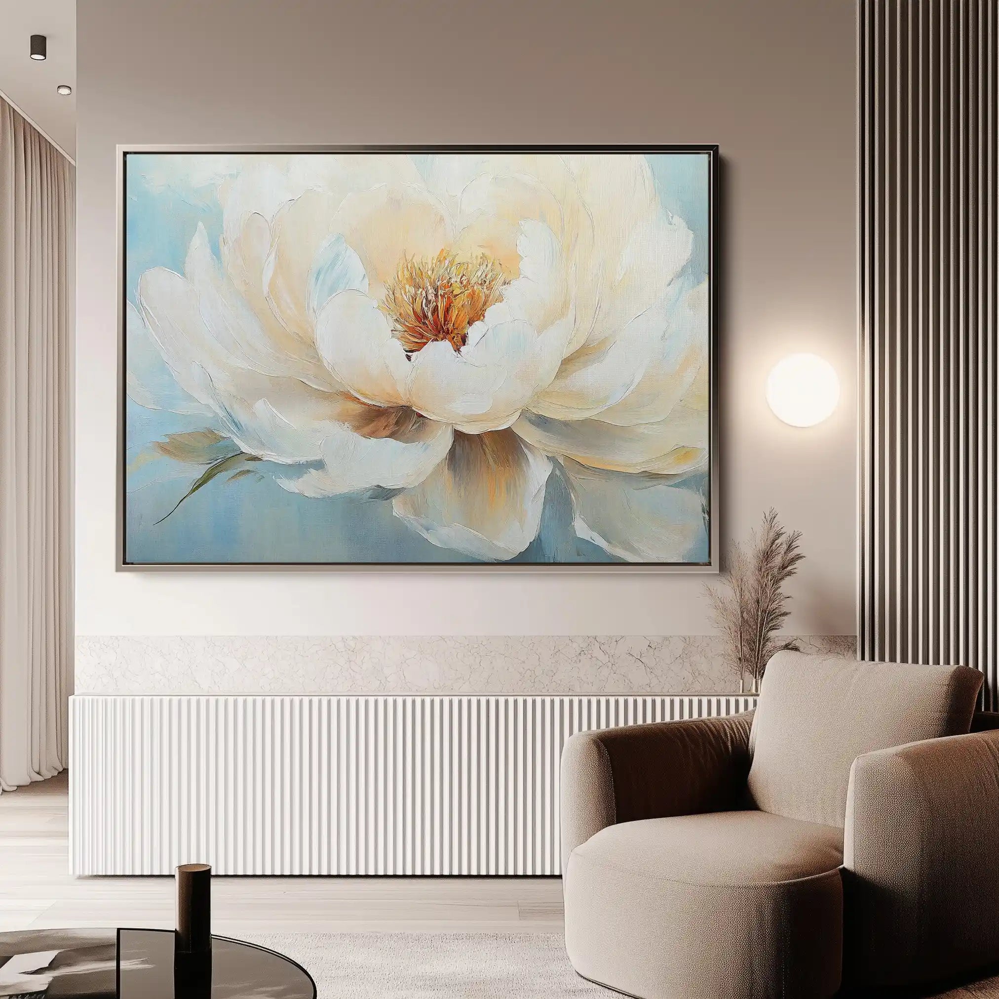 Modern wall art with quiet luxury. Museum-grade printing on 410gsm cotton canvas, set in a slim floater frame—clean, calm, ready to hang.