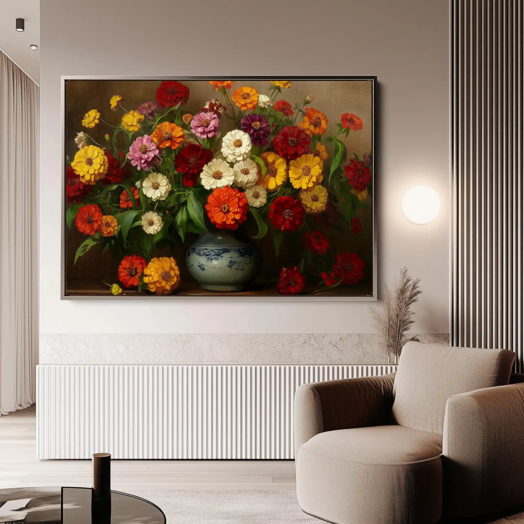 Modern wall art with quiet luxury. Museum-grade printing on 410gsm cotton canvas, set in a slim floater frame—clean, calm, ready to hang.