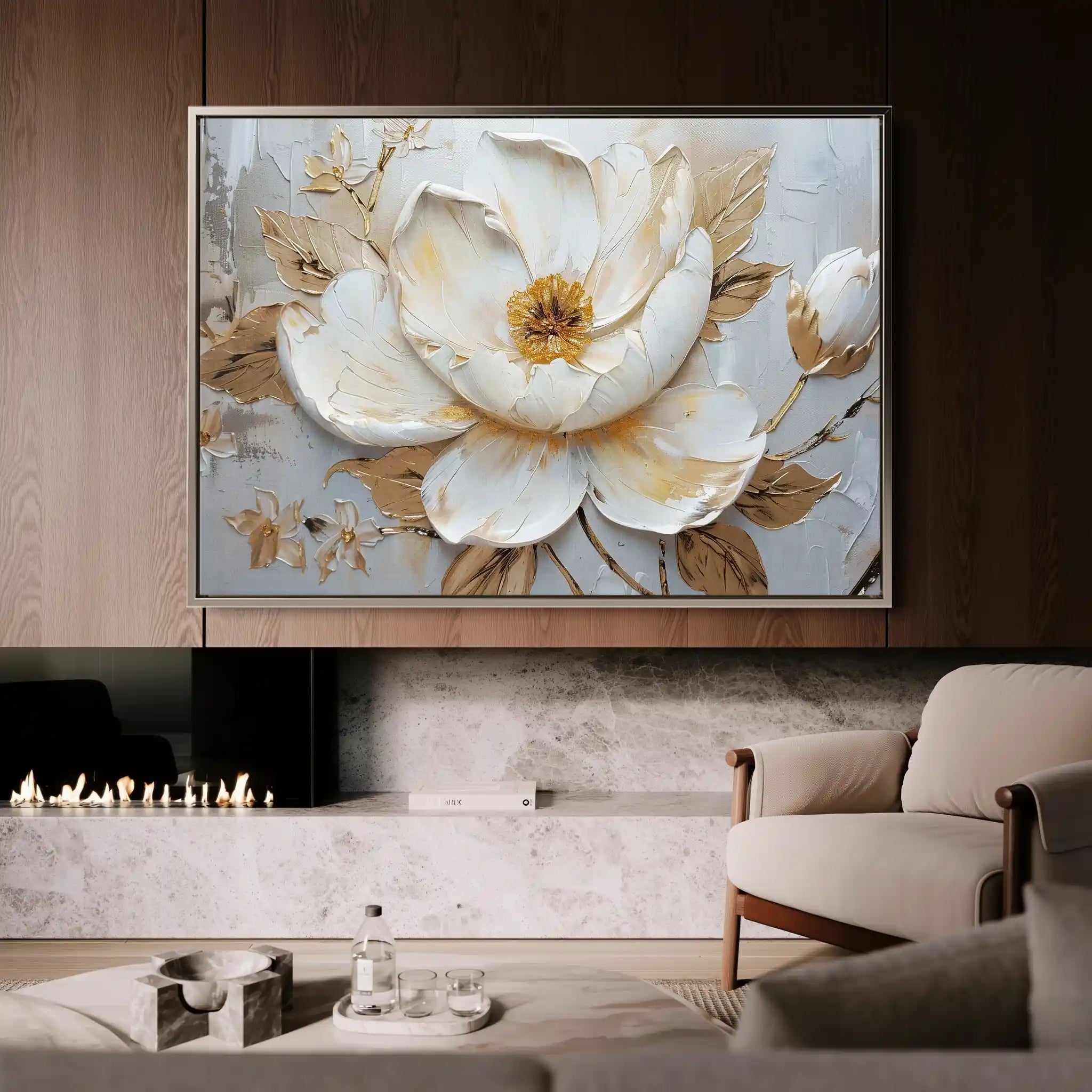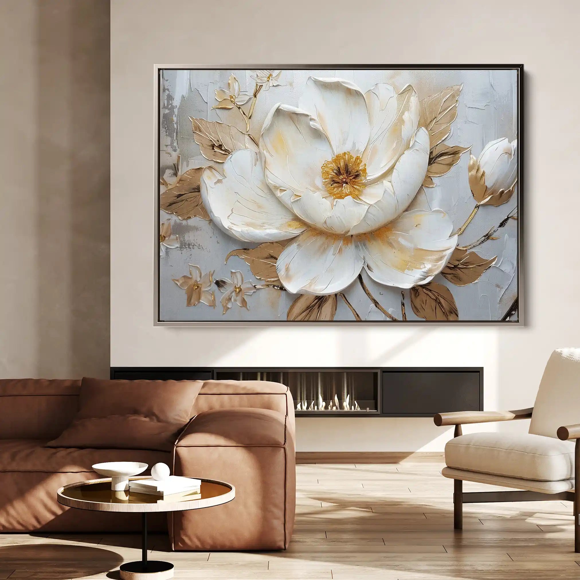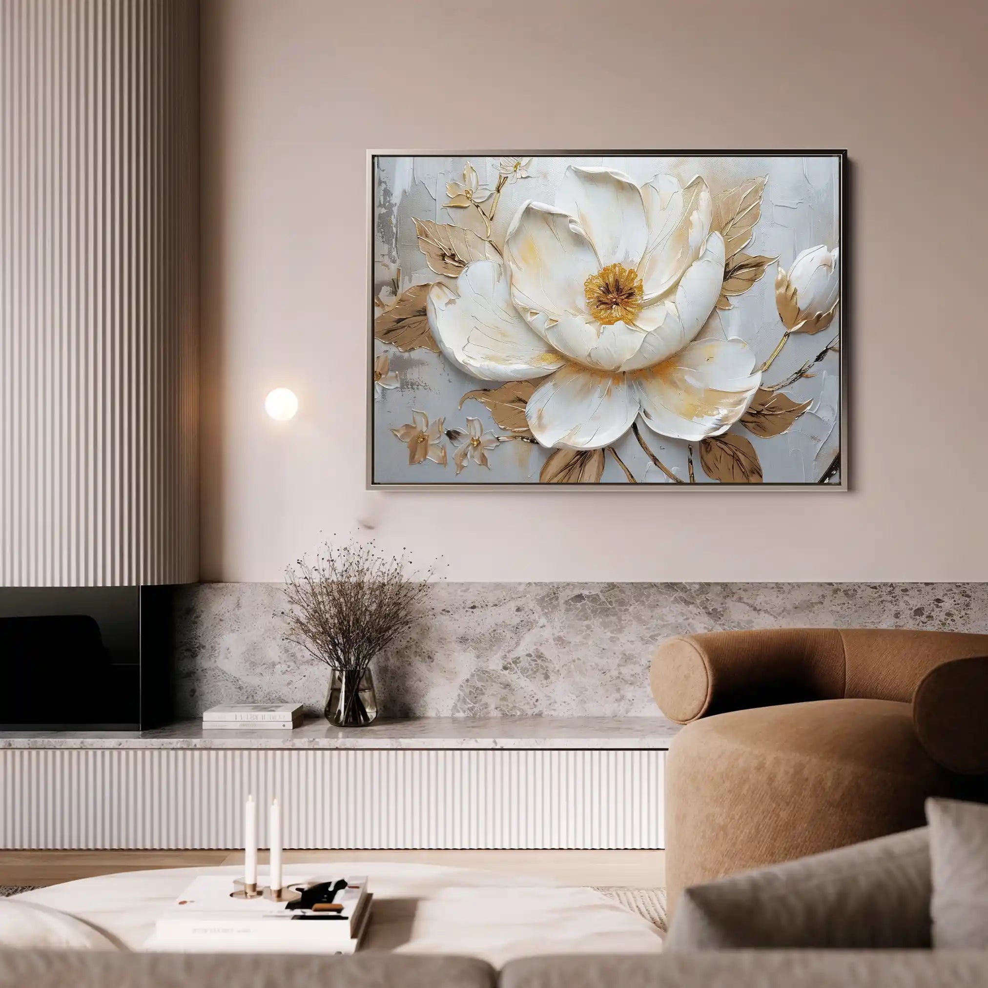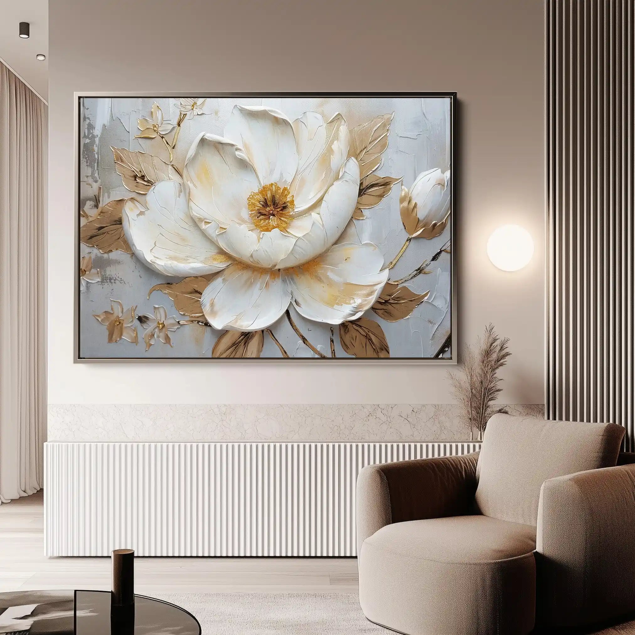 Modern wall art with quiet luxury. Museum-grade printing on 410gsm cotton canvas, set in a slim floater frame—clean, calm, ready to hang.