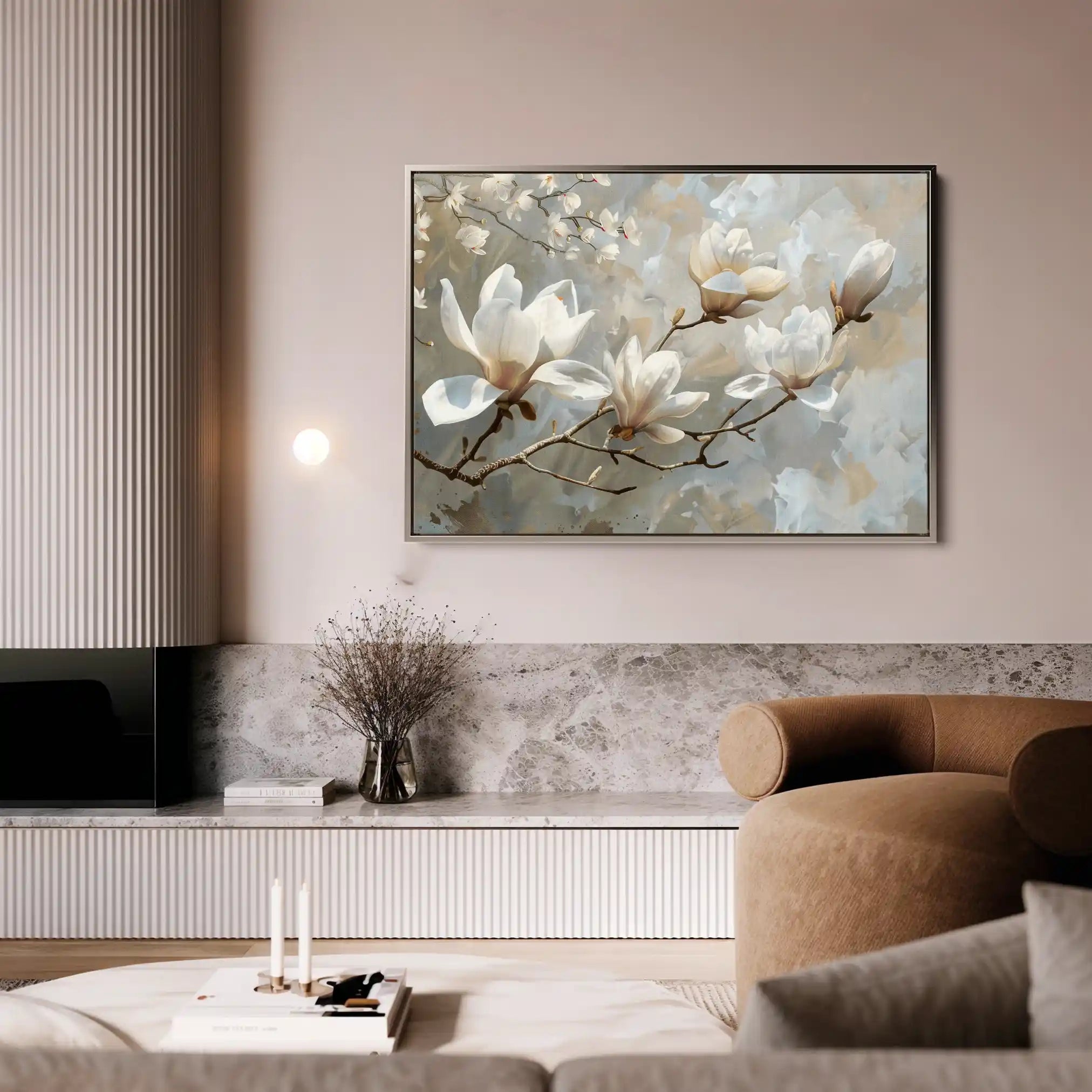 Modern wall art with quiet luxury. Museum-grade printing on 410gsm cotton canvas, set in a slim floater frame—clean, calm, ready to hang.