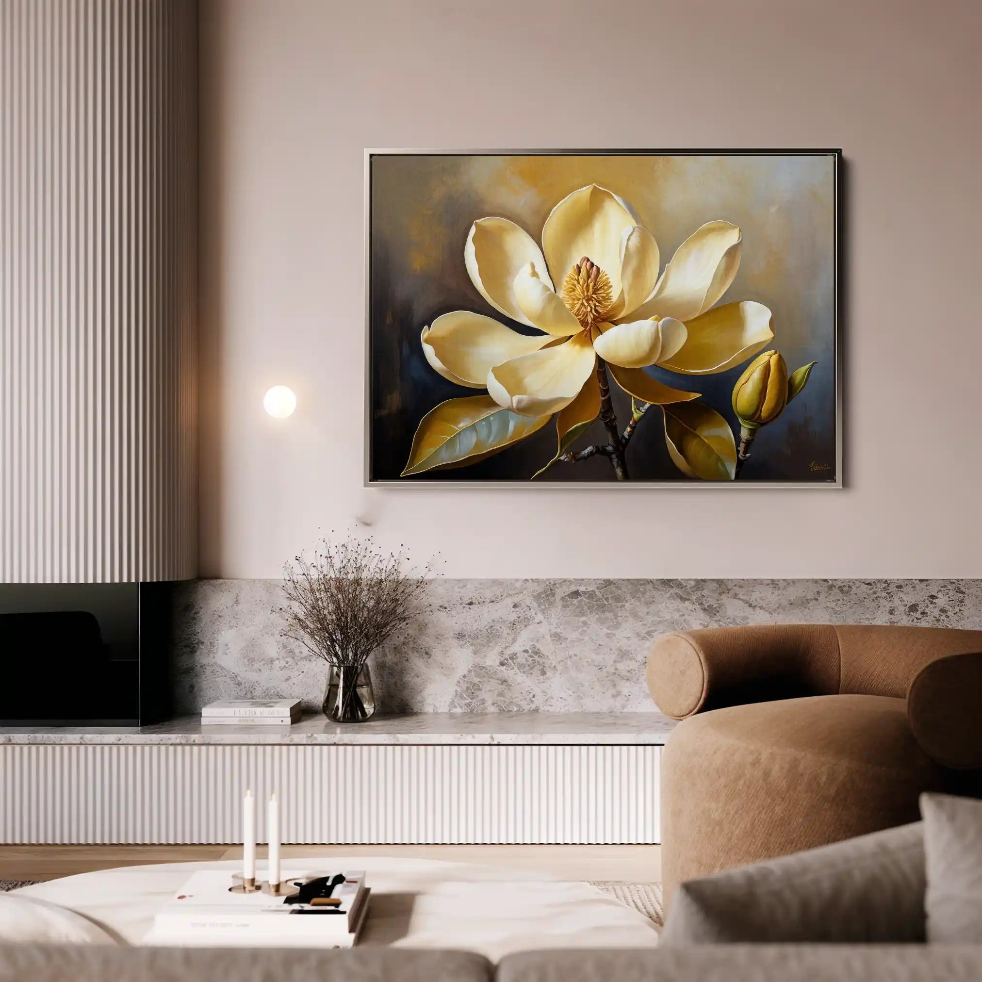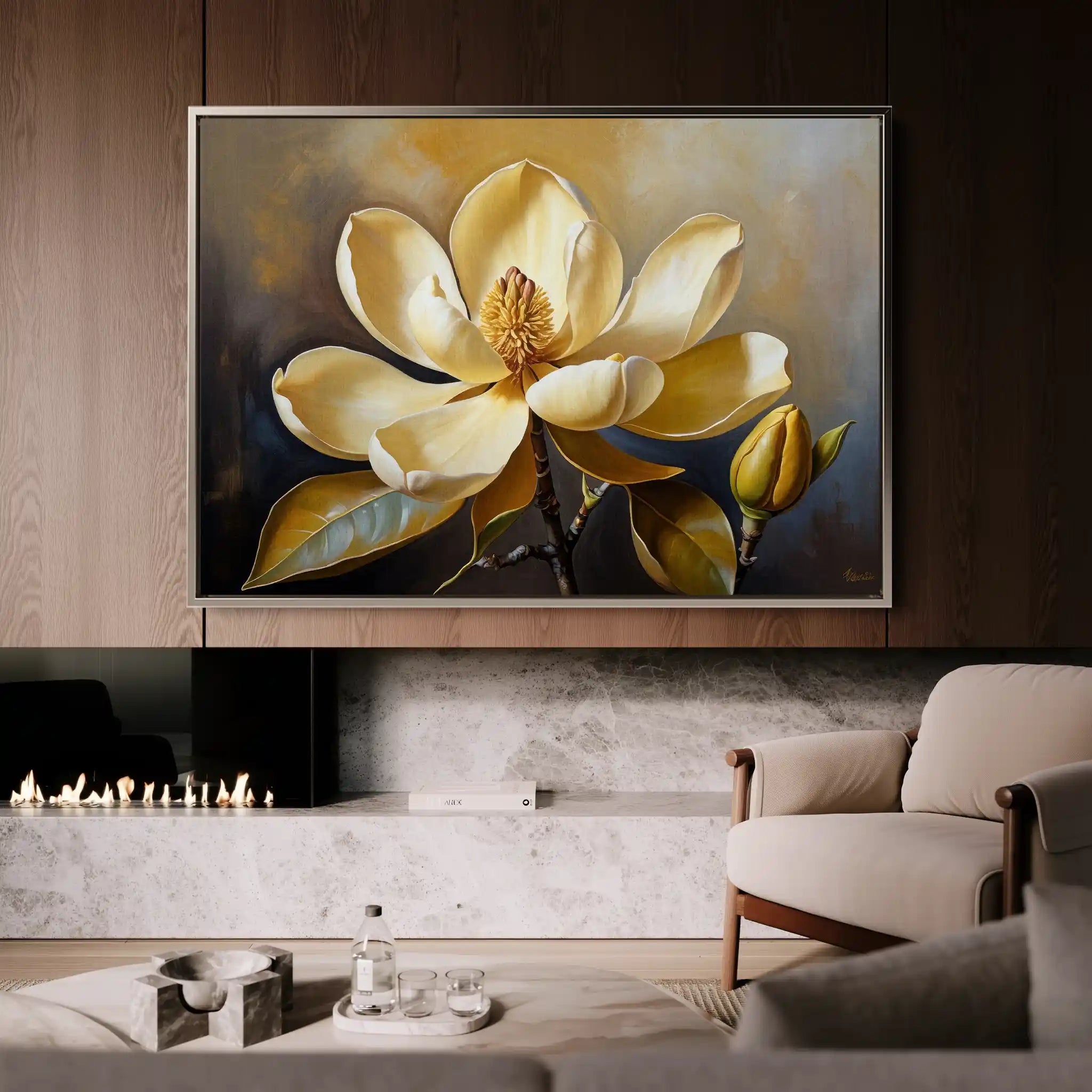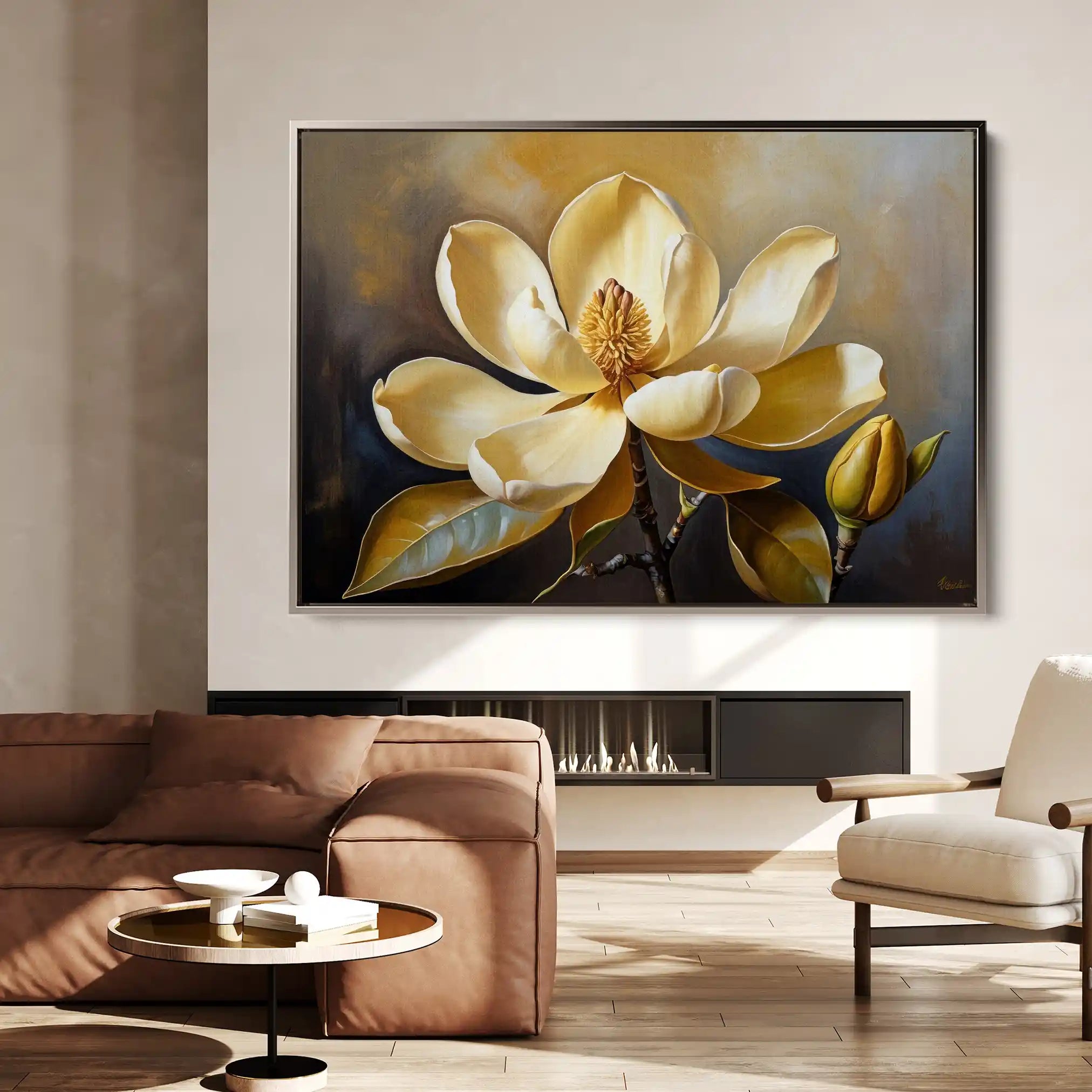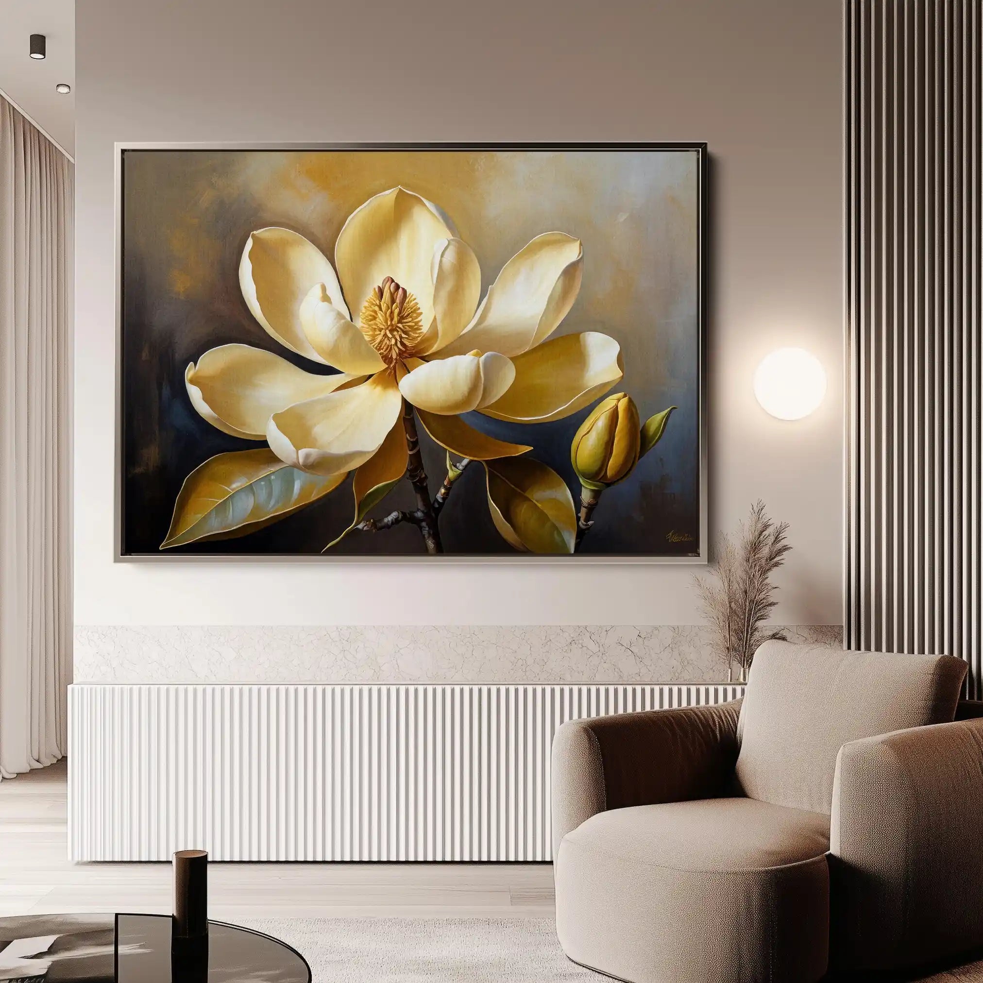 Modern wall art with quiet luxury. Museum-grade printing on 410gsm cotton canvas, set in a slim floater frame—clean, calm, ready to hang.