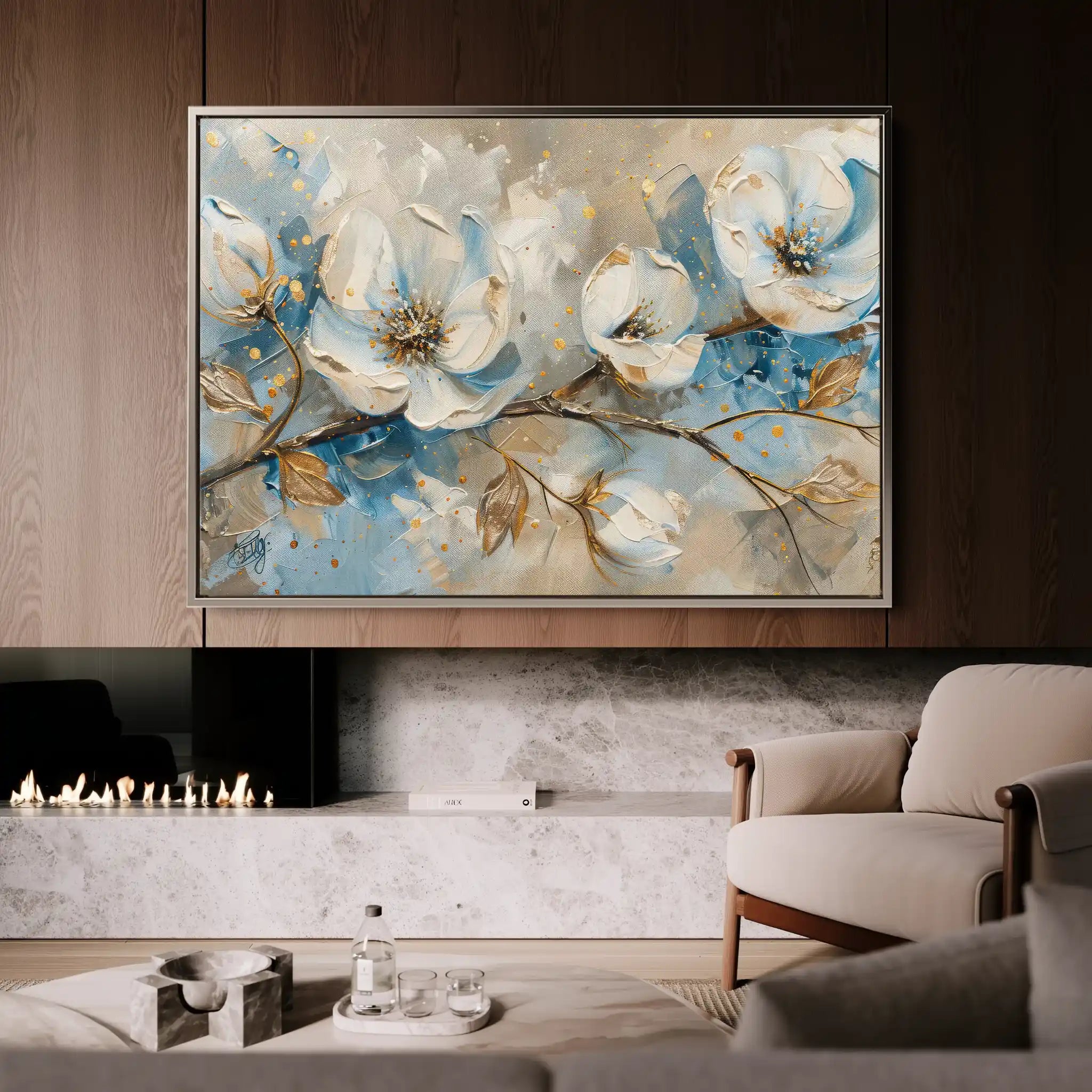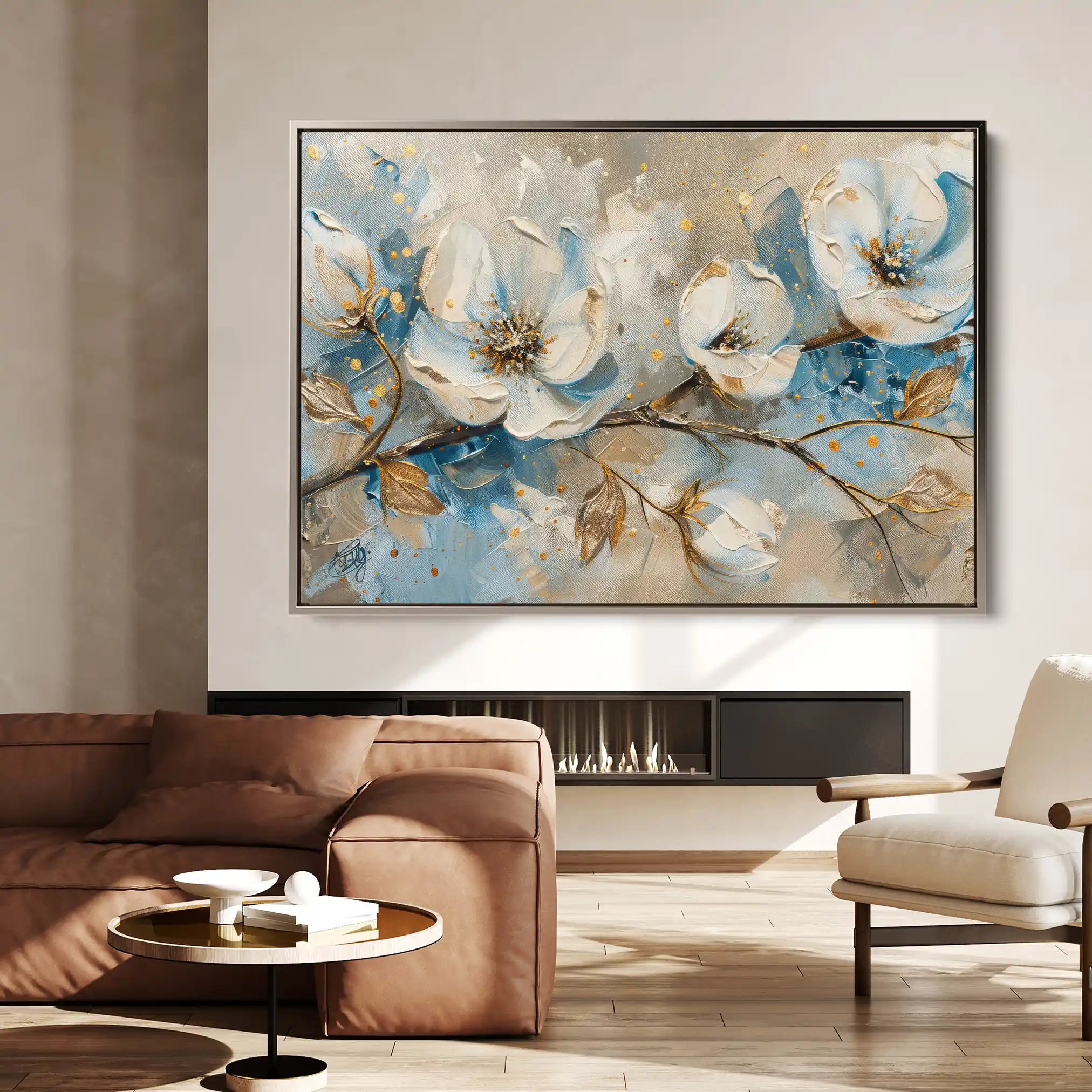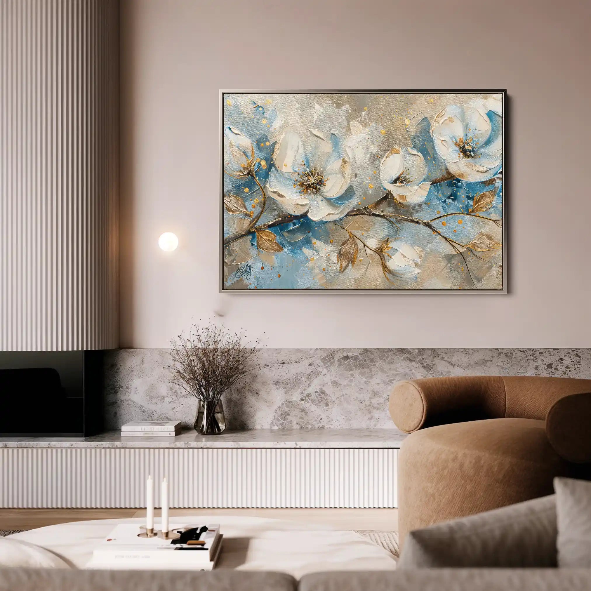 Modern wall art with quiet luxury. Museum-grade printing on 410gsm cotton canvas, set in a slim floater frame—clean, calm, ready to hang.