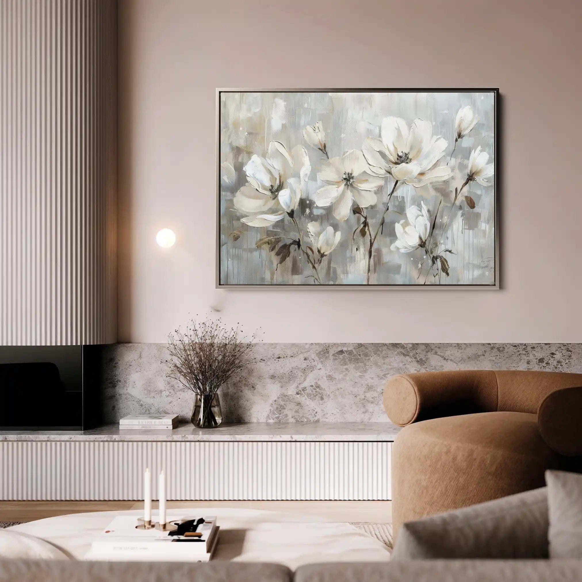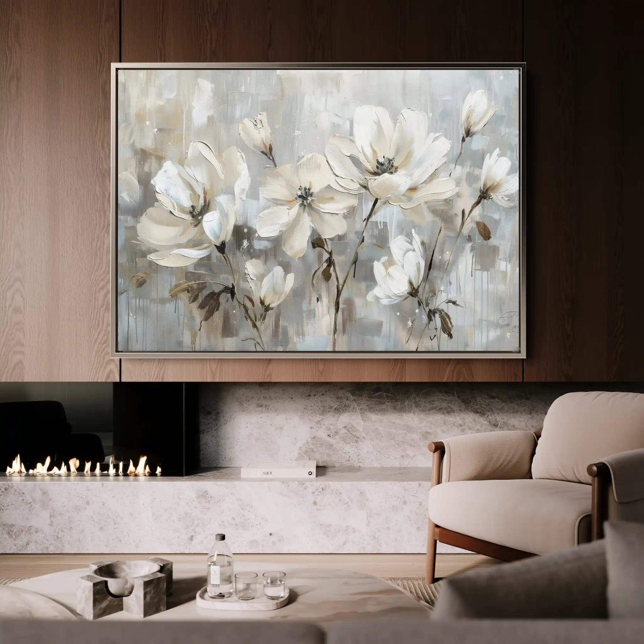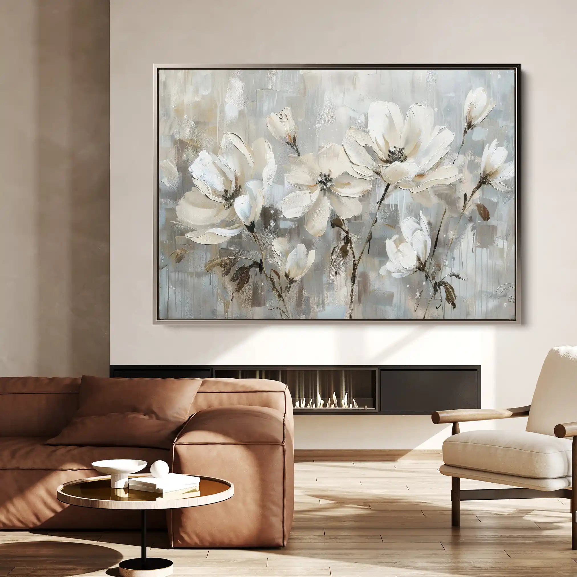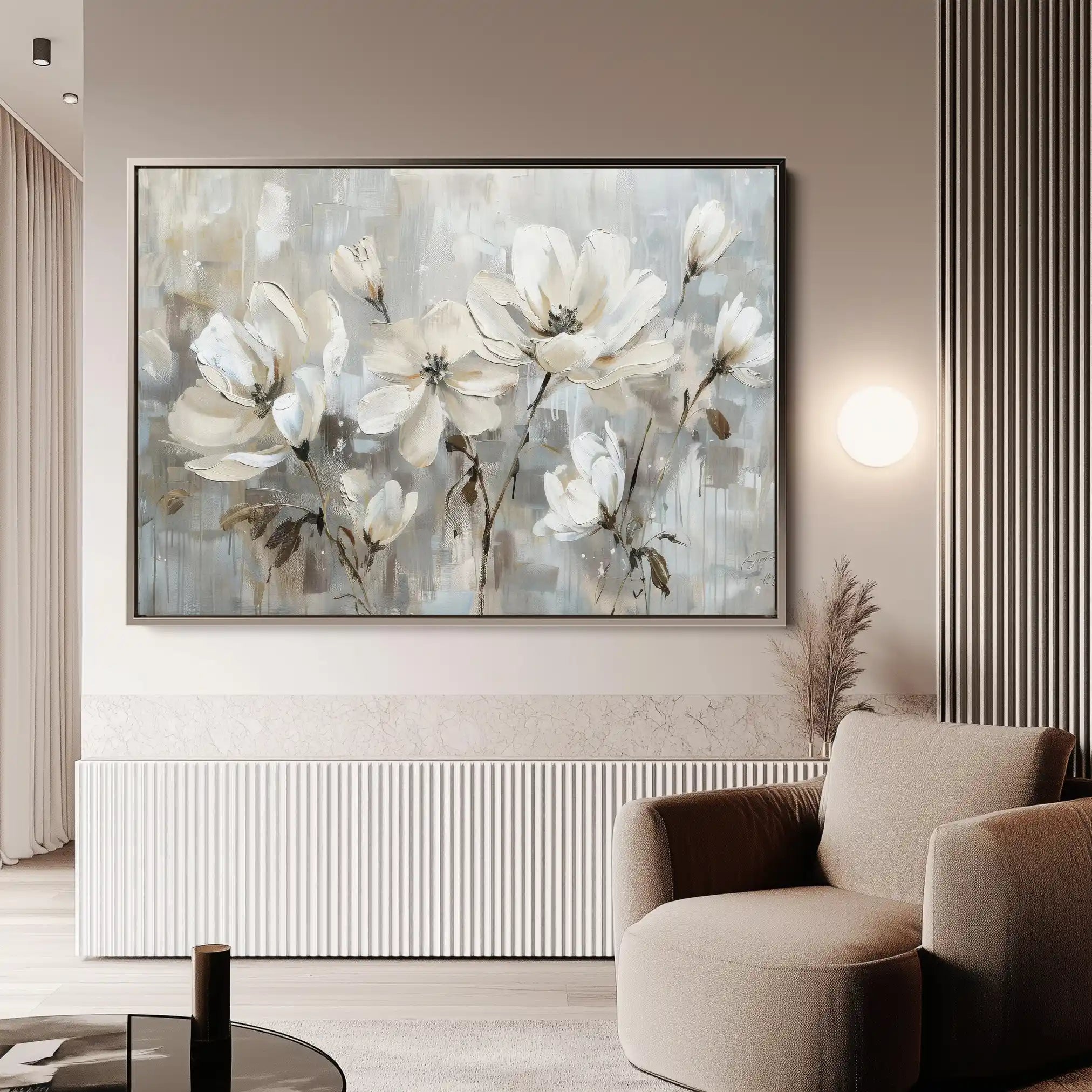 Modern wall art with quiet luxury. Museum-grade printing on 410gsm cotton canvas, set in a slim floater frame—clean, calm, ready to hang.