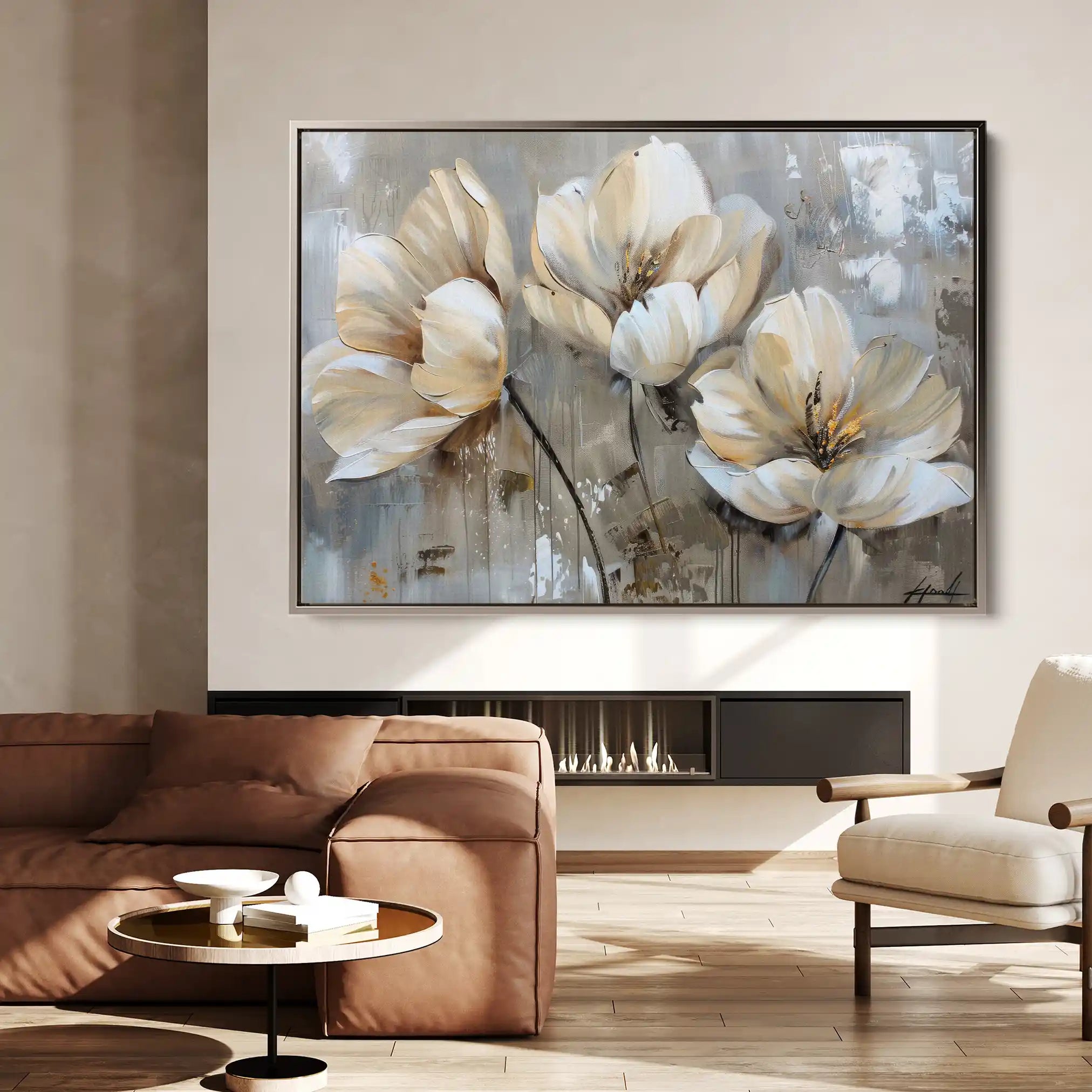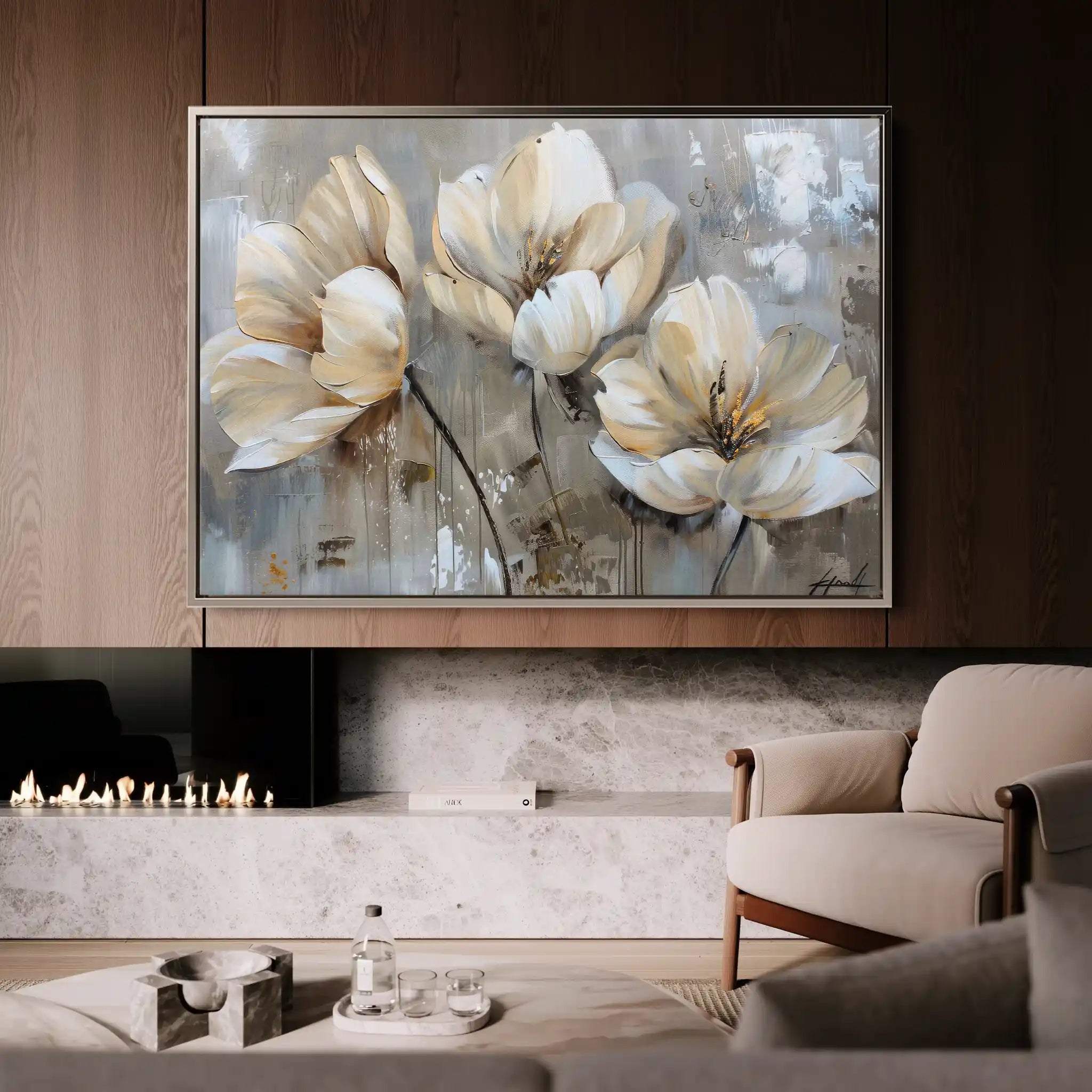 Modern wall art with quiet luxury. Museum-grade printing on 410gsm cotton canvas, set in a slim floater frame—clean, calm, ready to hang.