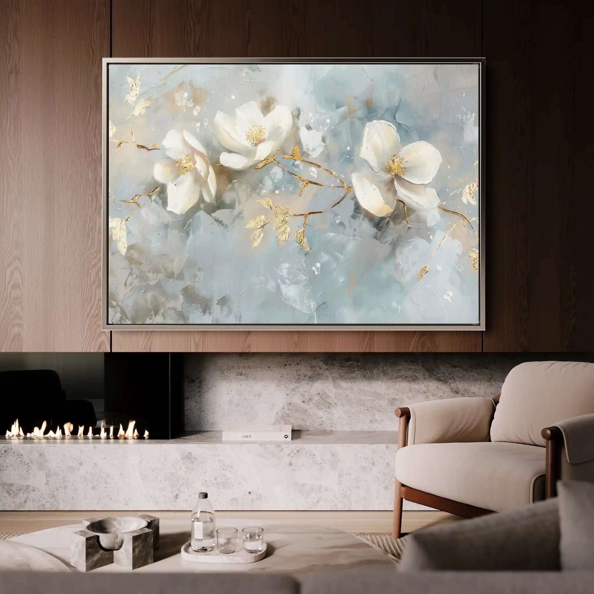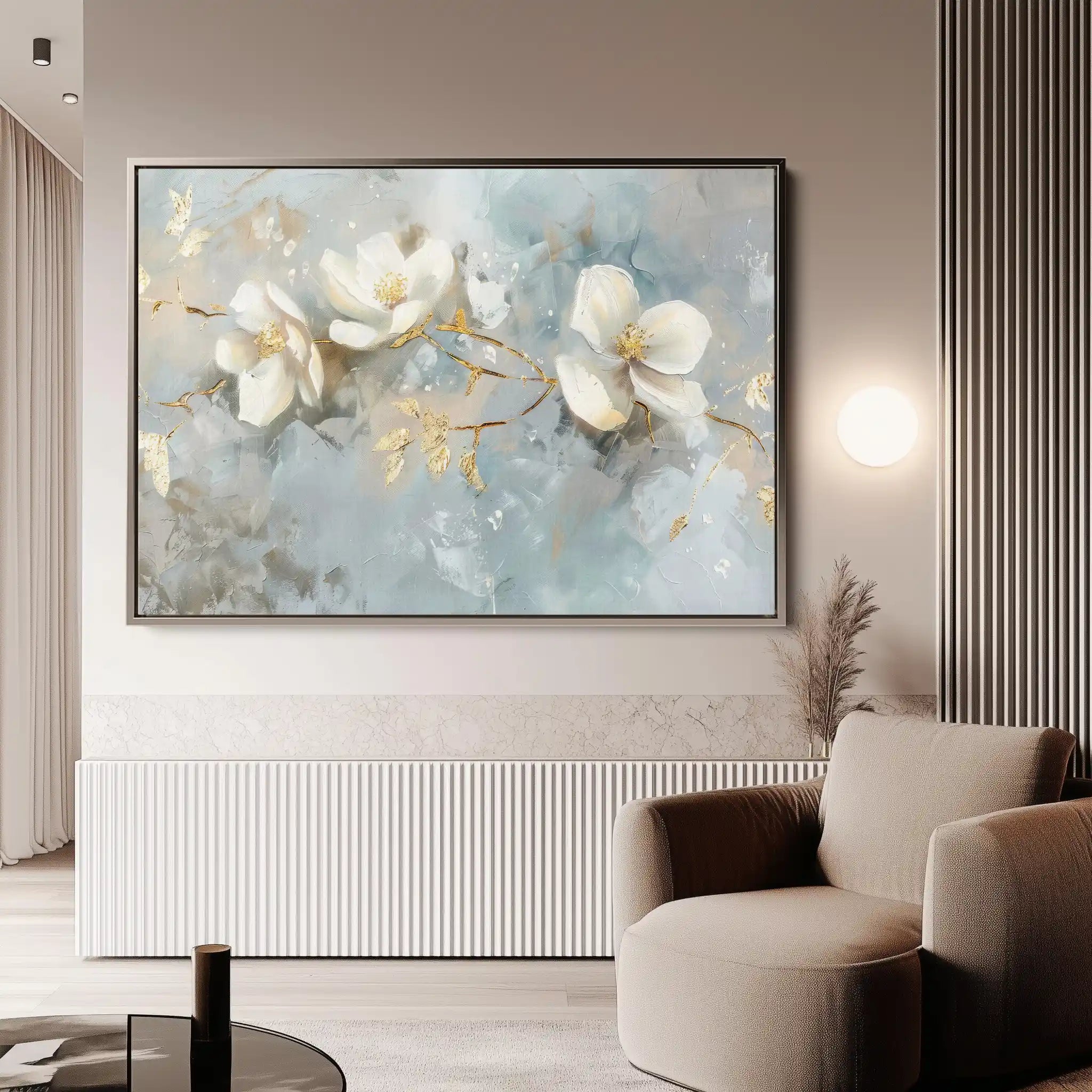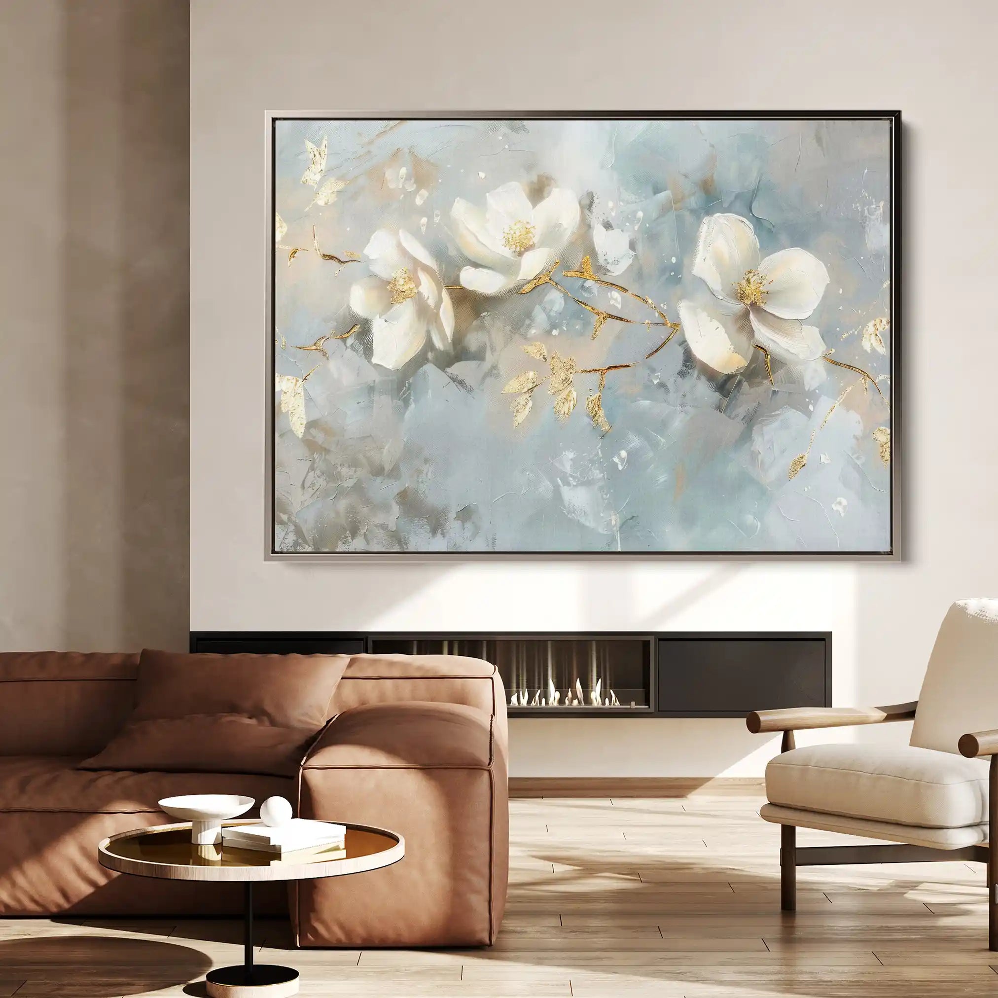 Modern wall art with quiet luxury. Museum-grade printing on 410gsm cotton canvas, set in a slim floater frame—clean, calm, ready to hang.