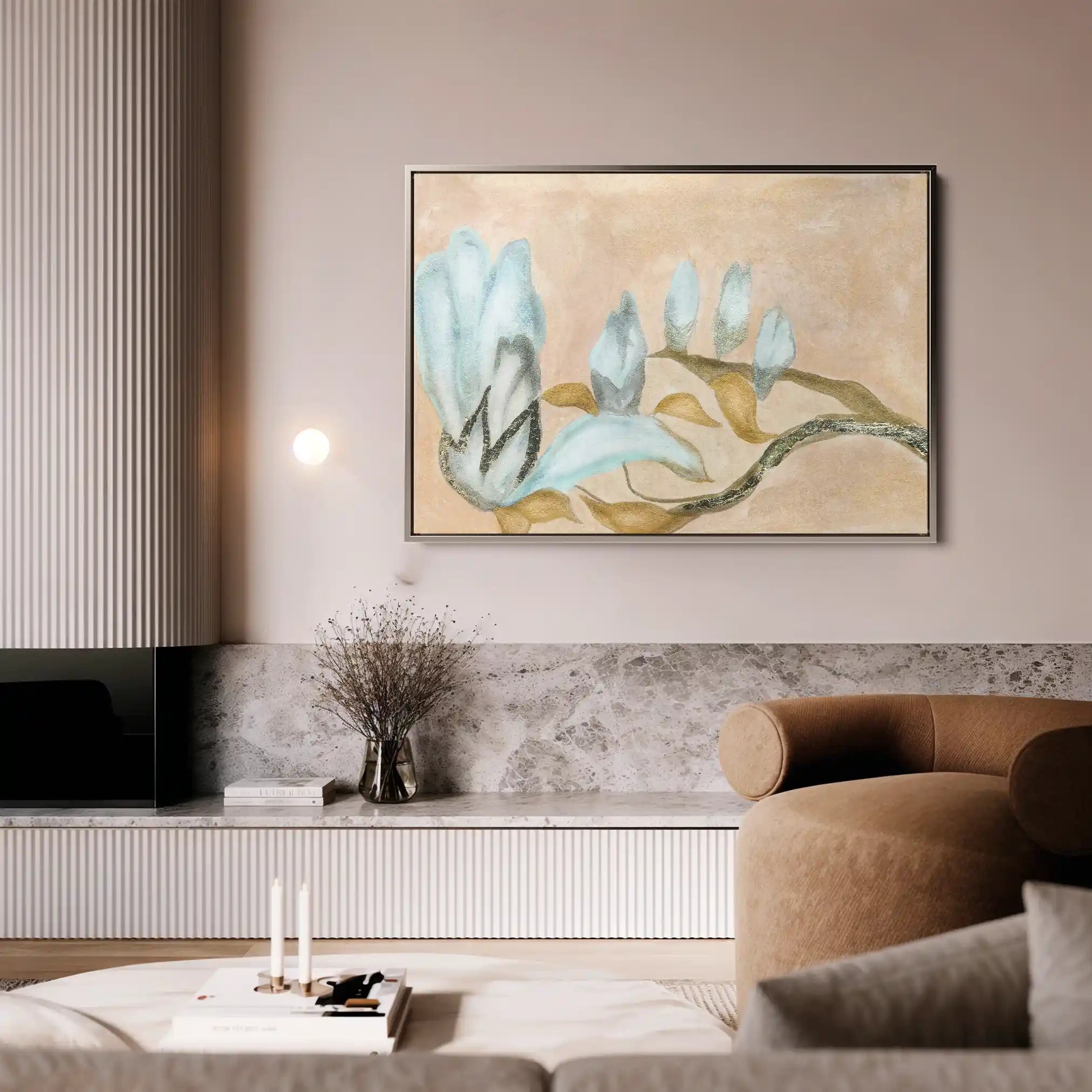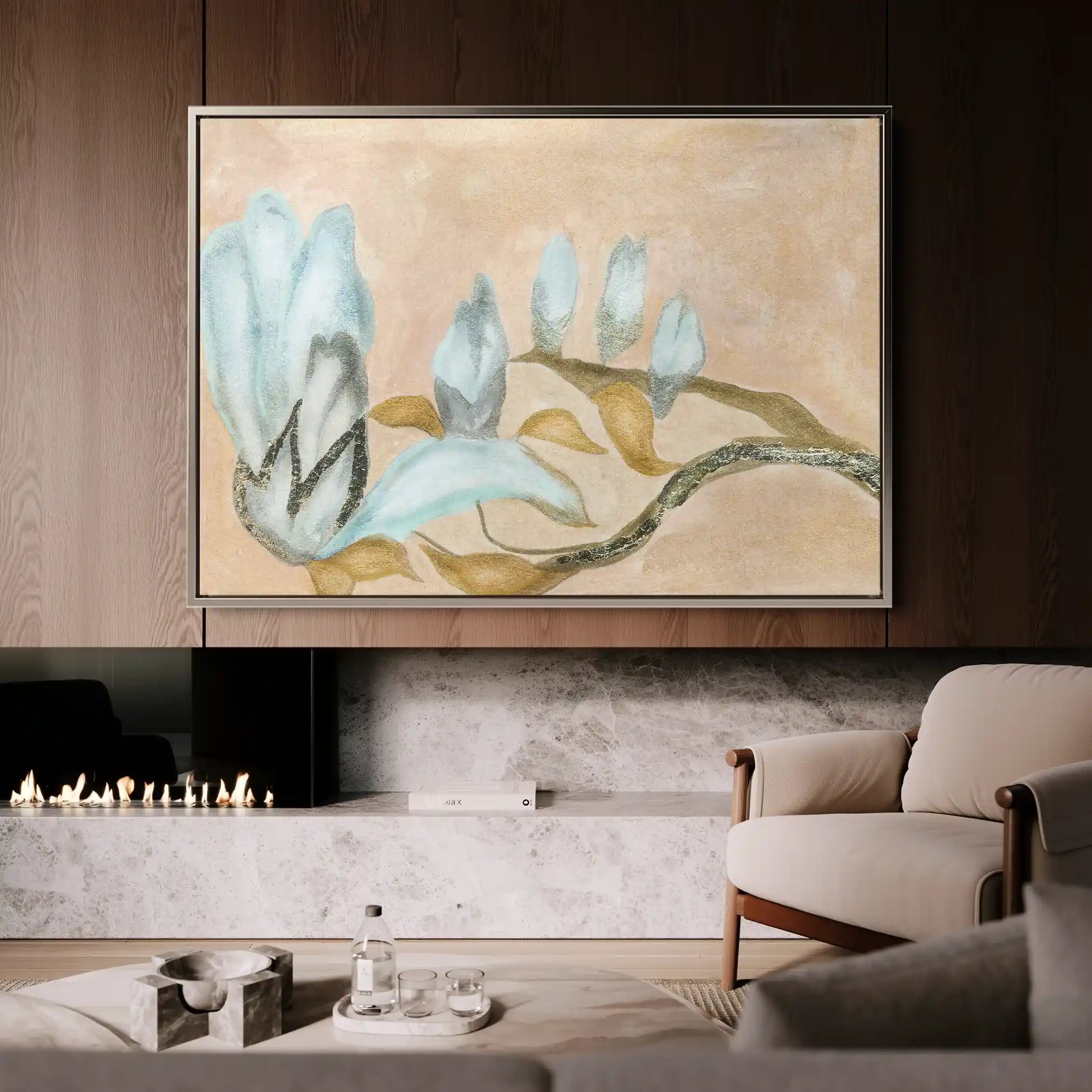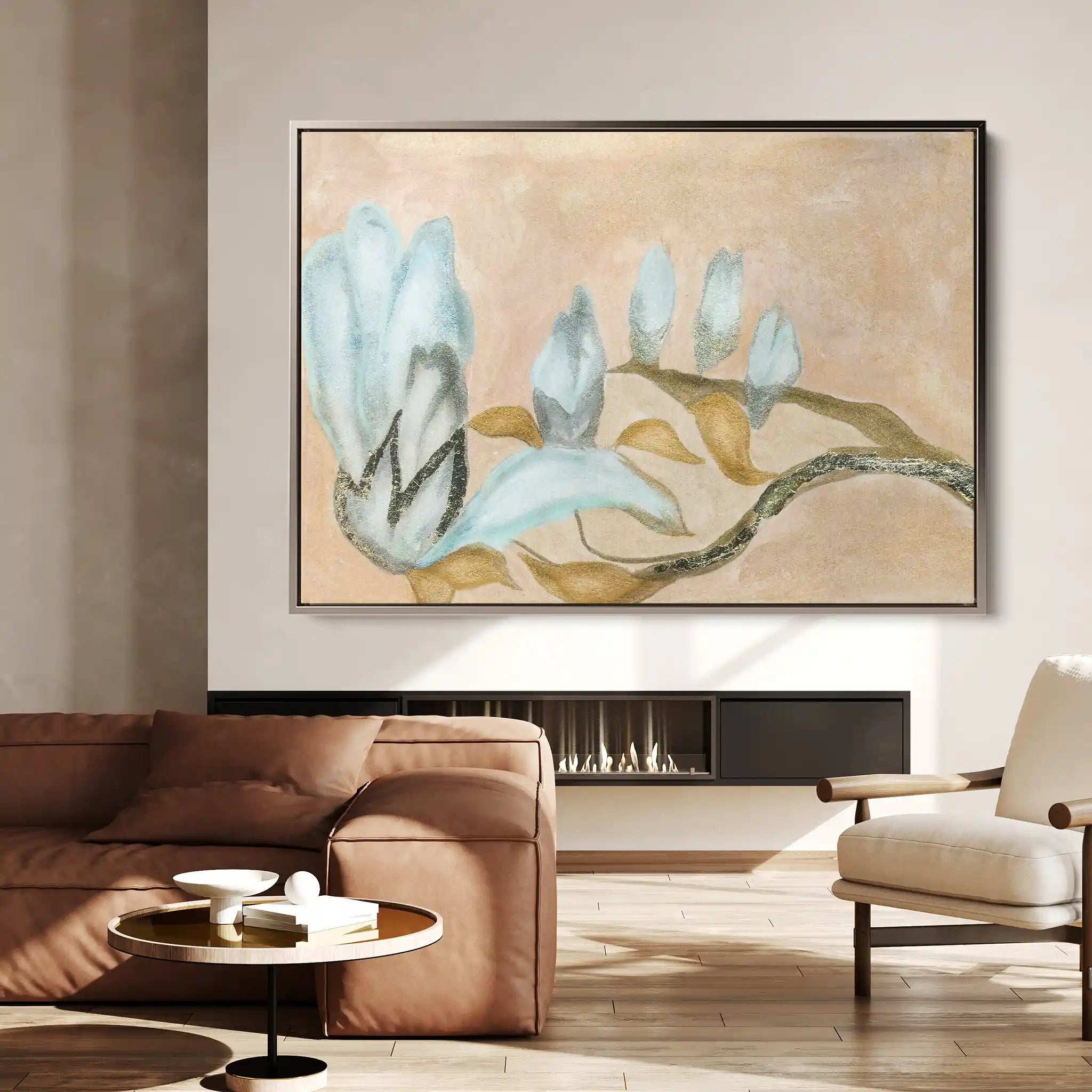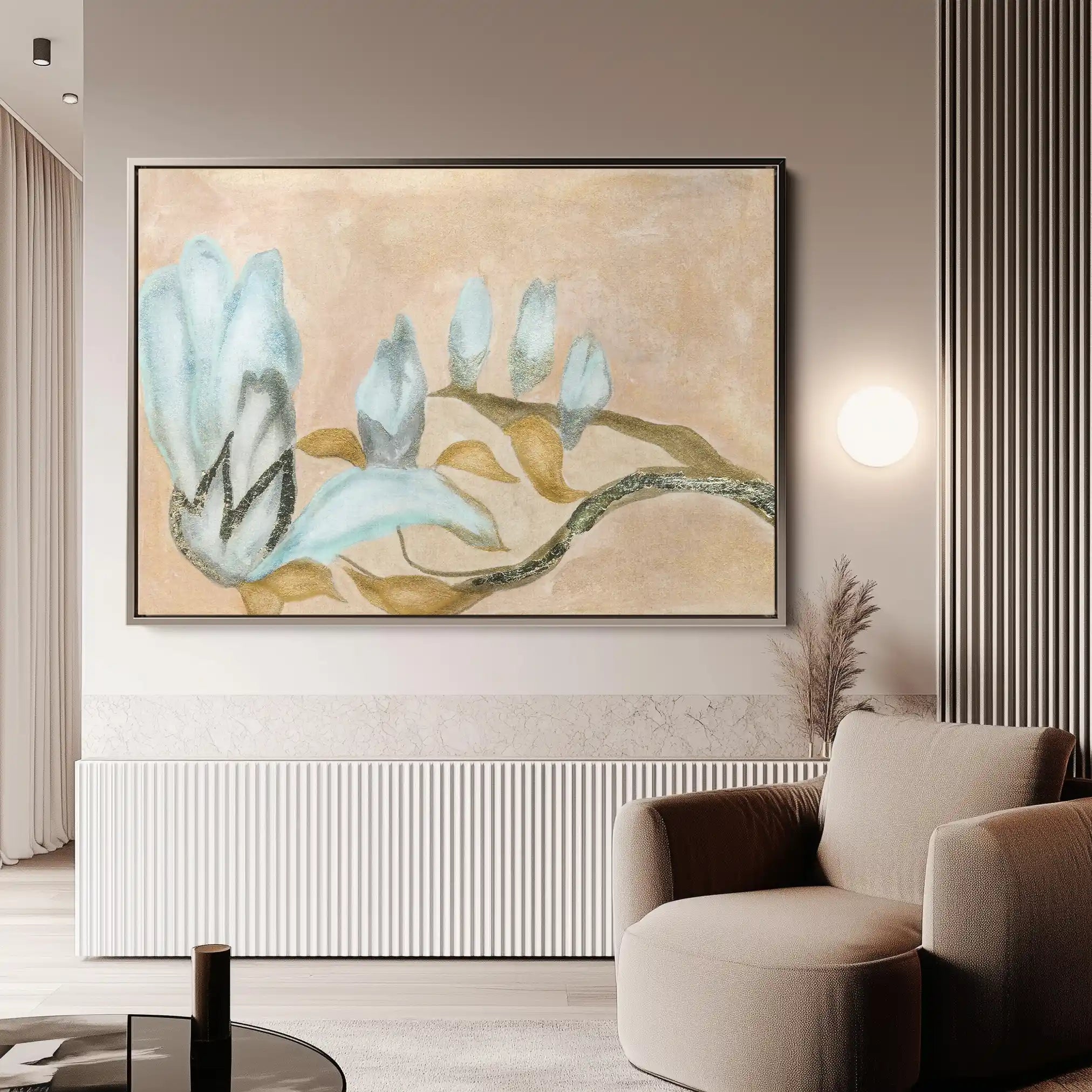 Modern wall art with quiet luxury. Museum-grade printing on 410gsm cotton canvas, set in a slim floater frame—clean, calm, ready to hang.