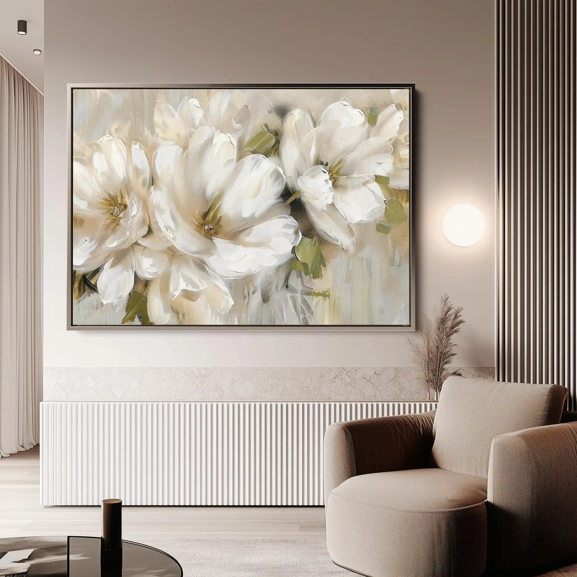 Modern wall art with quiet luxury. Museum-grade printing on 410gsm cotton canvas, set in a slim floater frame—clean, calm, ready to hang.