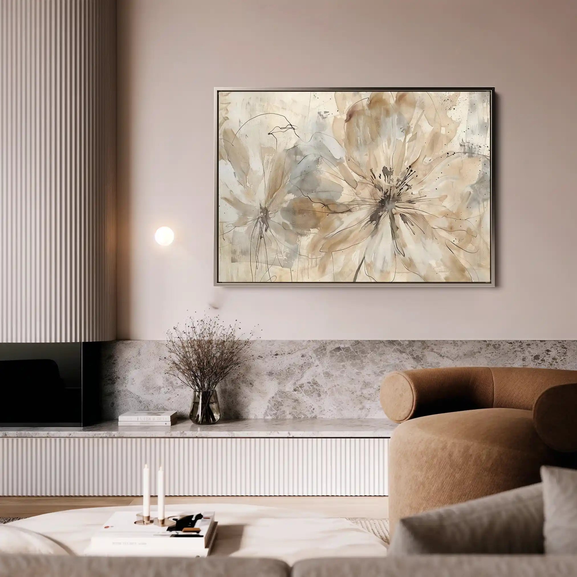 Modern wall art with quiet luxury. Museum-grade printing on 410gsm cotton canvas, set in a slim floater frame—clean, calm, ready to hang.