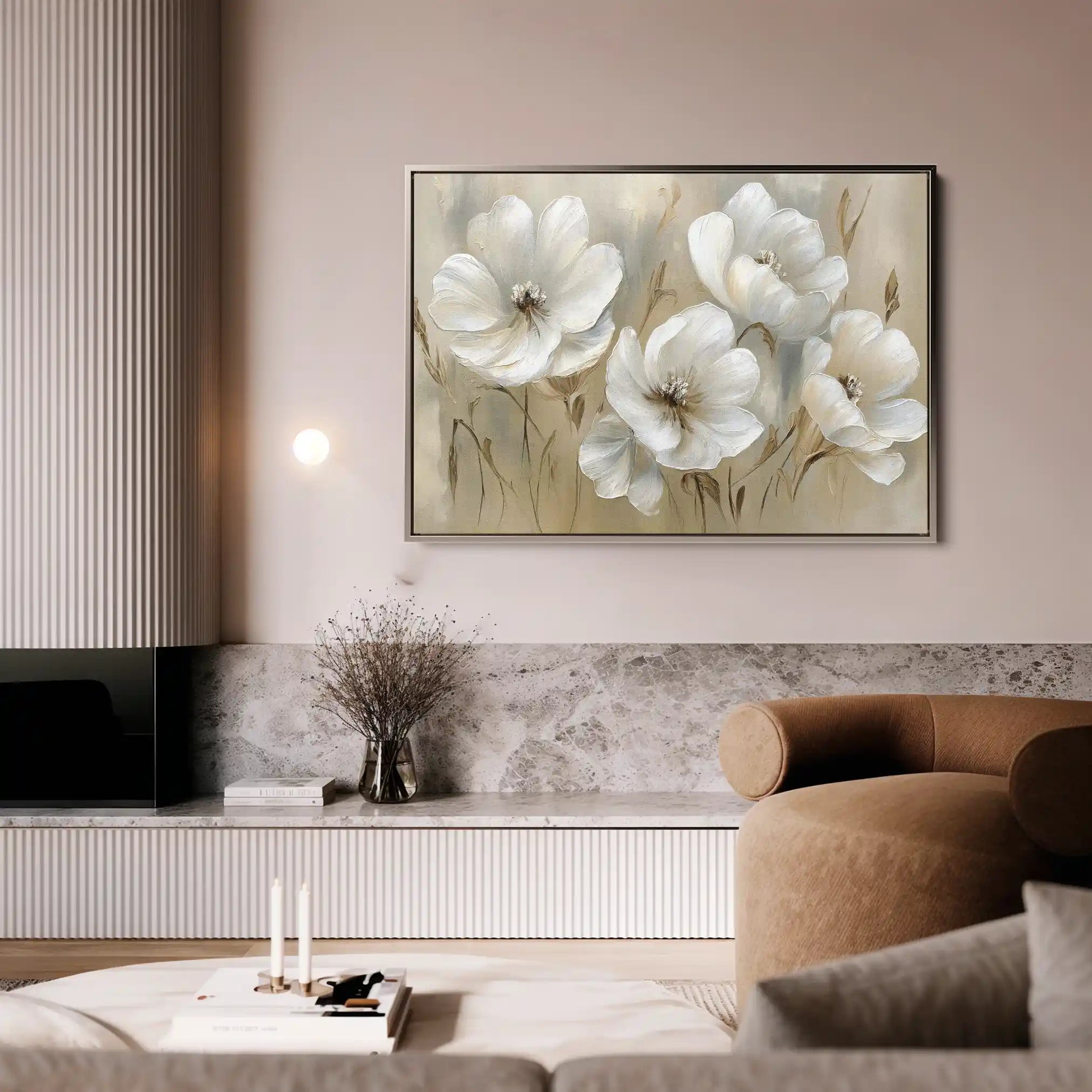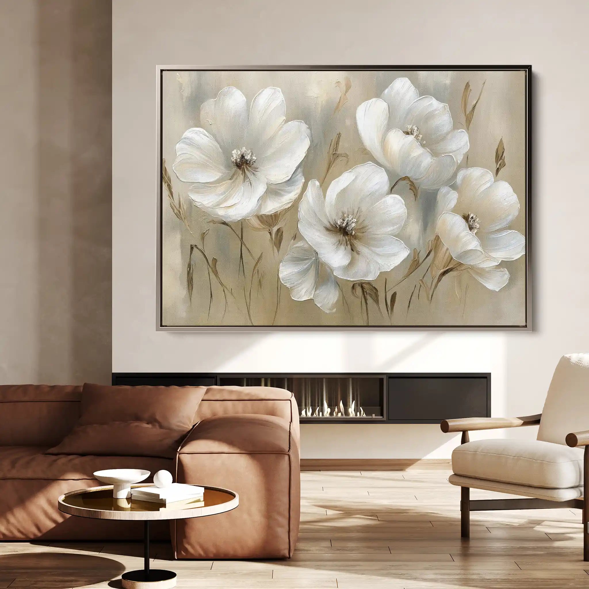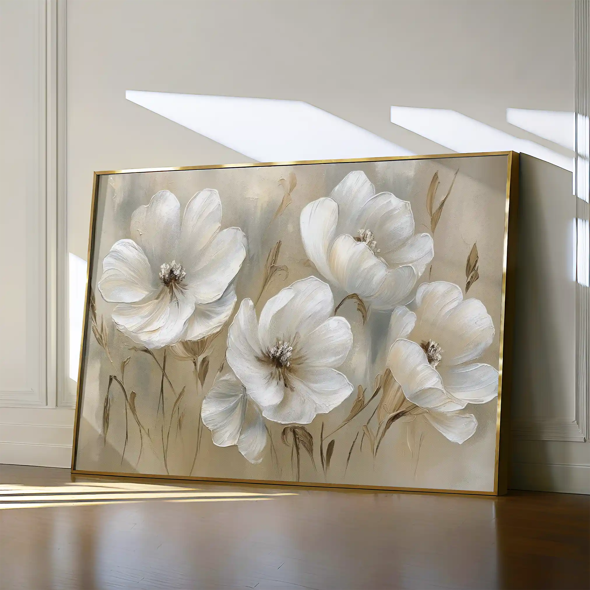Modern wall art with quiet luxury. Museum-grade printing on 410gsm cotton canvas, set in a slim floater frame—clean, calm, ready to hang.