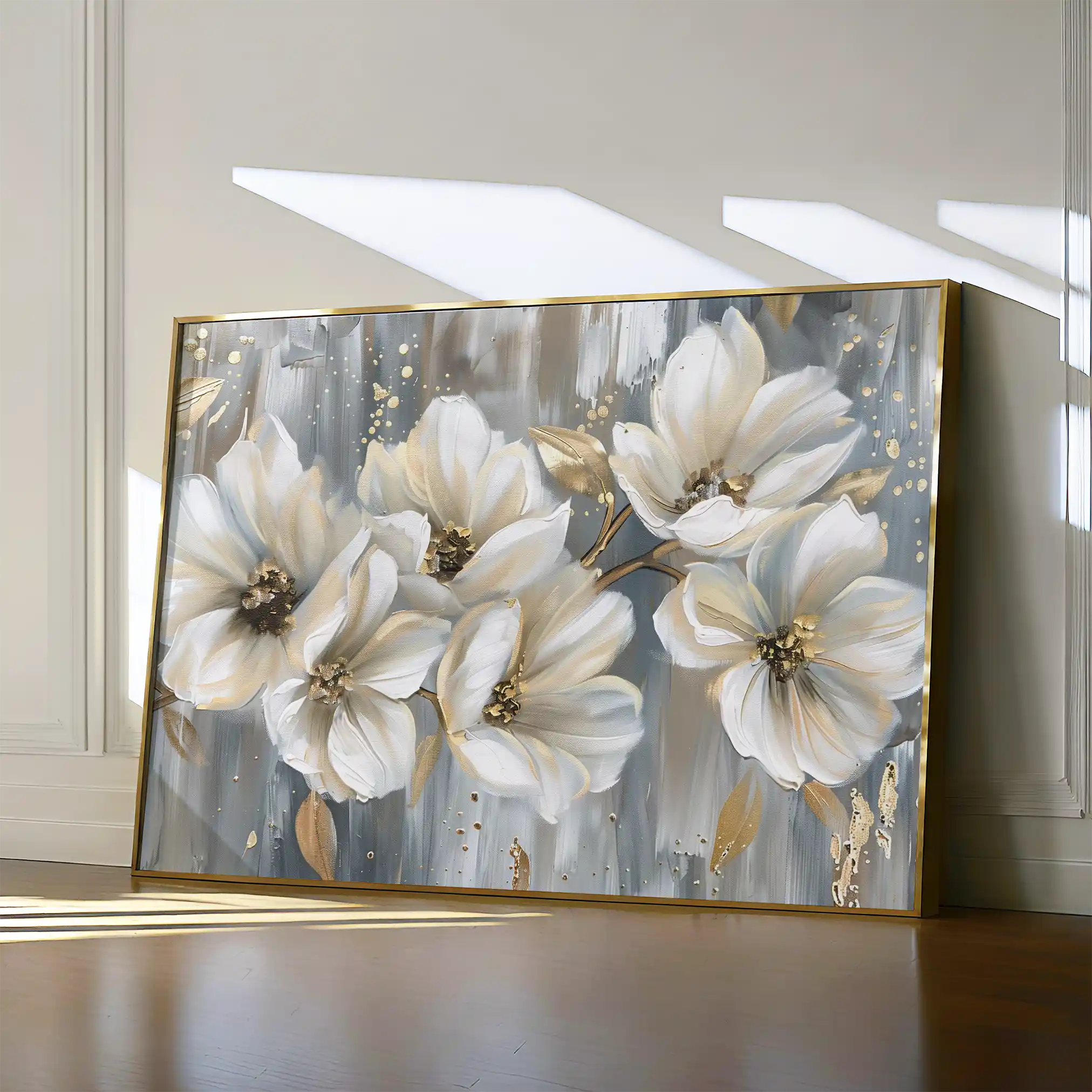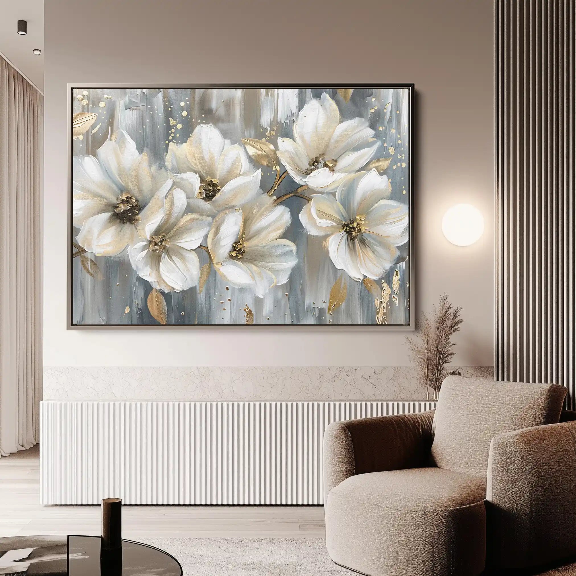 Modern wall art with quiet luxury. Museum-grade printing on 410gsm cotton canvas, set in a slim floater frame—clean, calm, ready to hang.