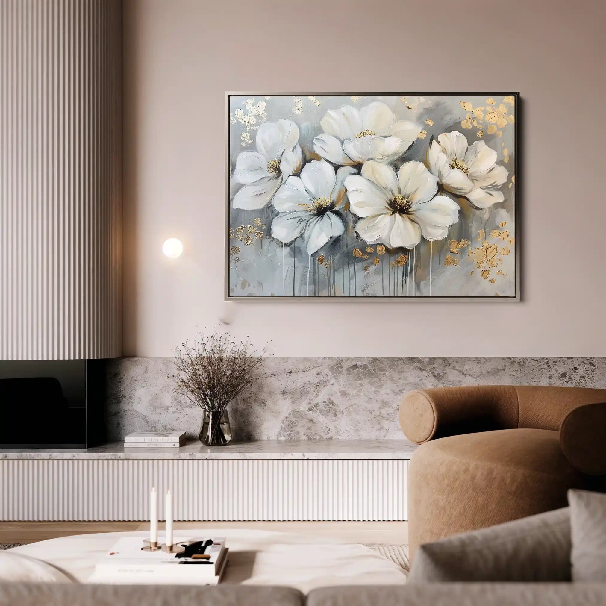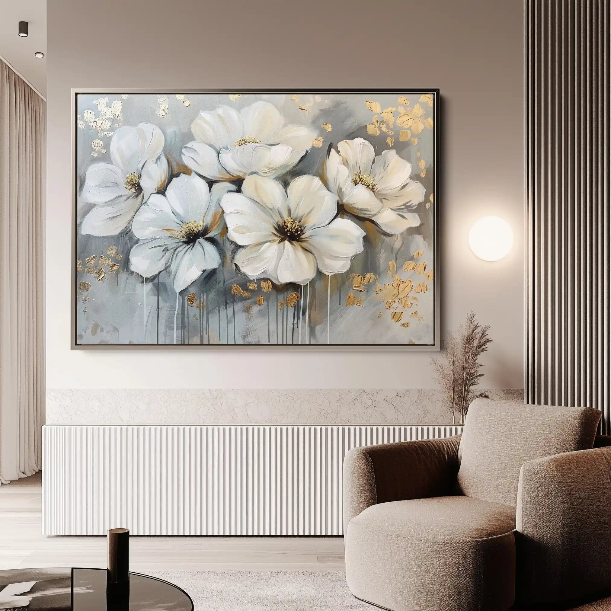 Modern wall art with quiet luxury. Museum-grade printing on 410gsm cotton canvas, set in a slim floater frame—clean, calm, ready to hang.