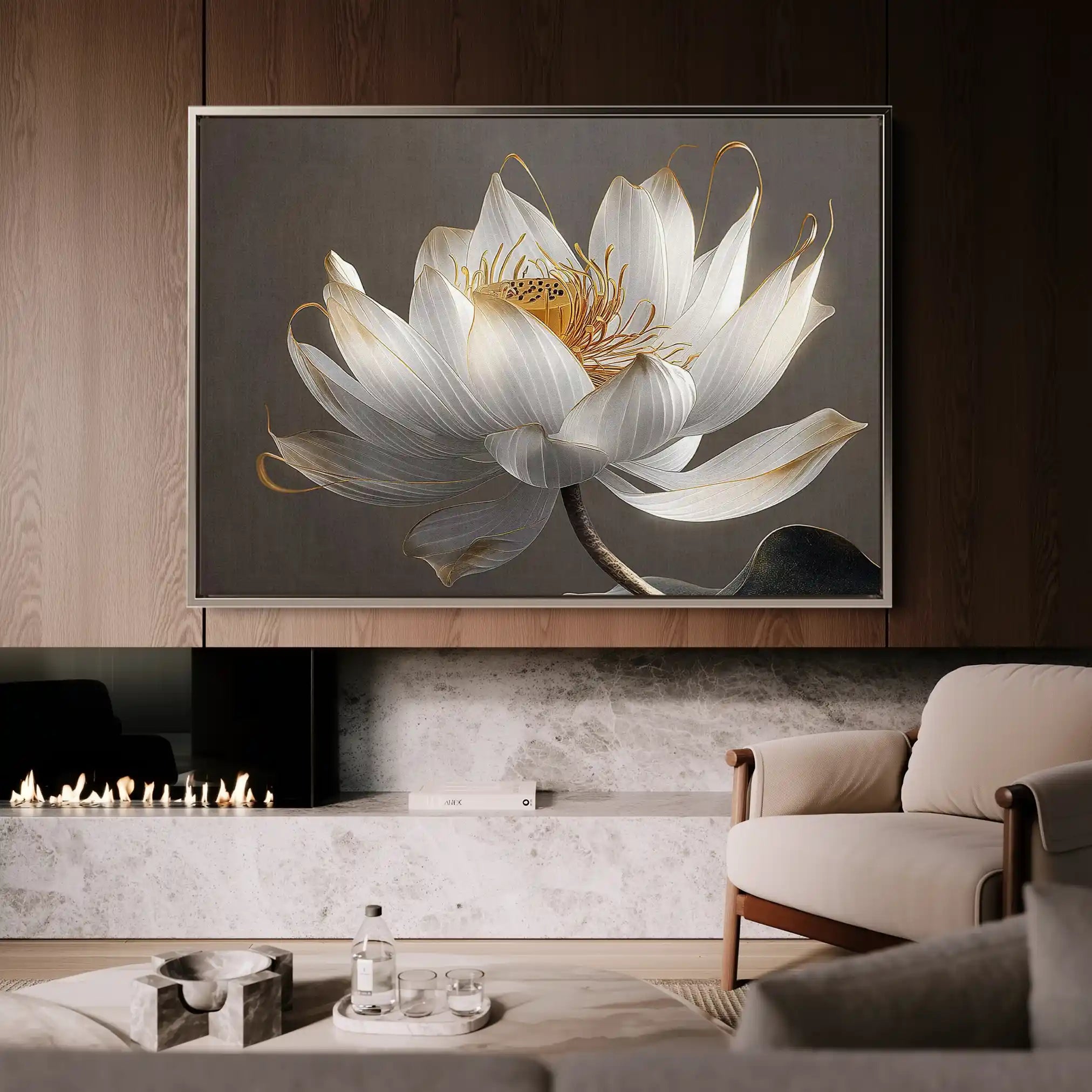 Modern wall art with quiet luxury. Museum-grade printing on 410gsm cotton canvas, set in a slim floater frame—clean, calm, ready to hang.