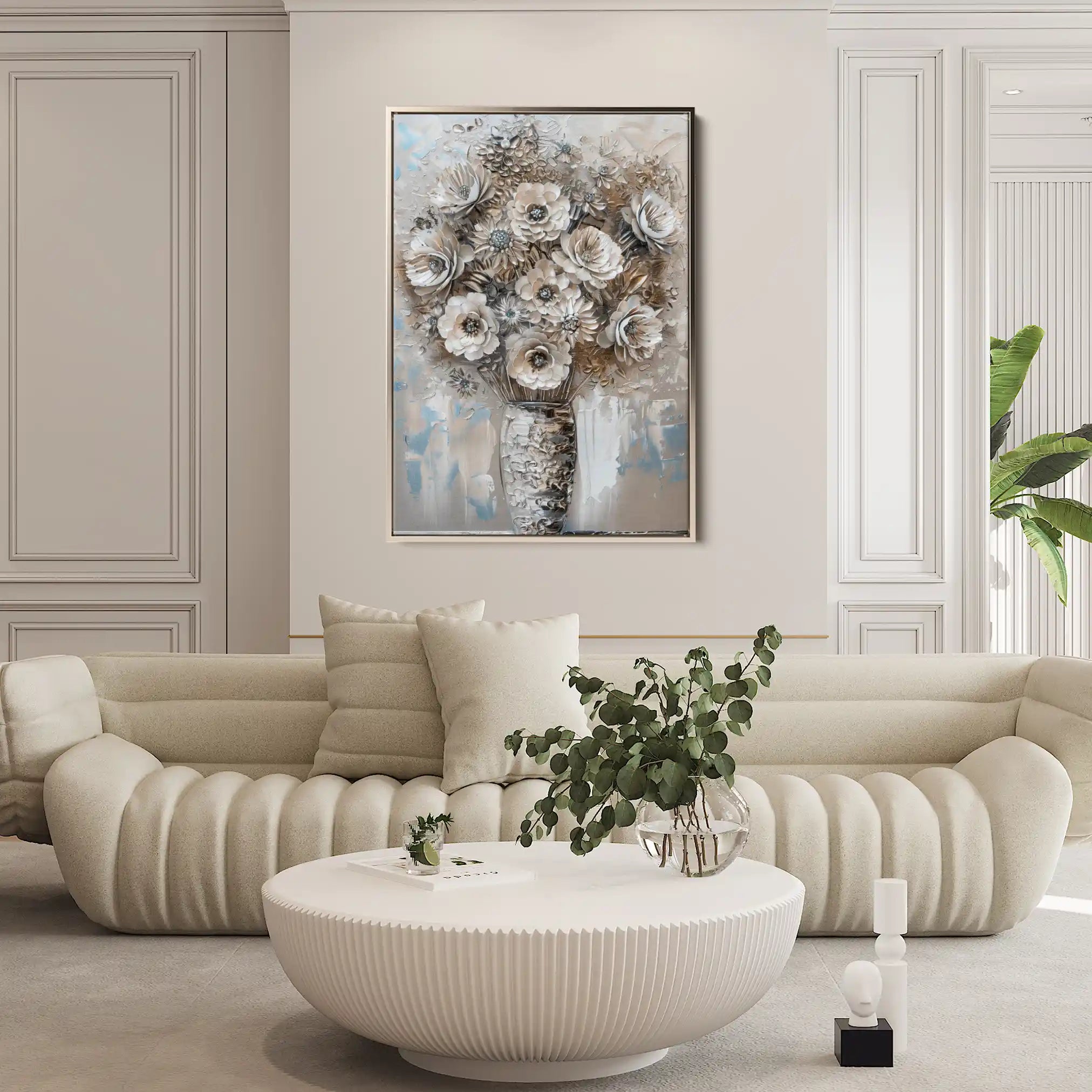 Modern wall art with quiet luxury. Museum-grade printing on 410gsm cotton canvas, set in a slim floater frame—clean, calm, ready to hang.