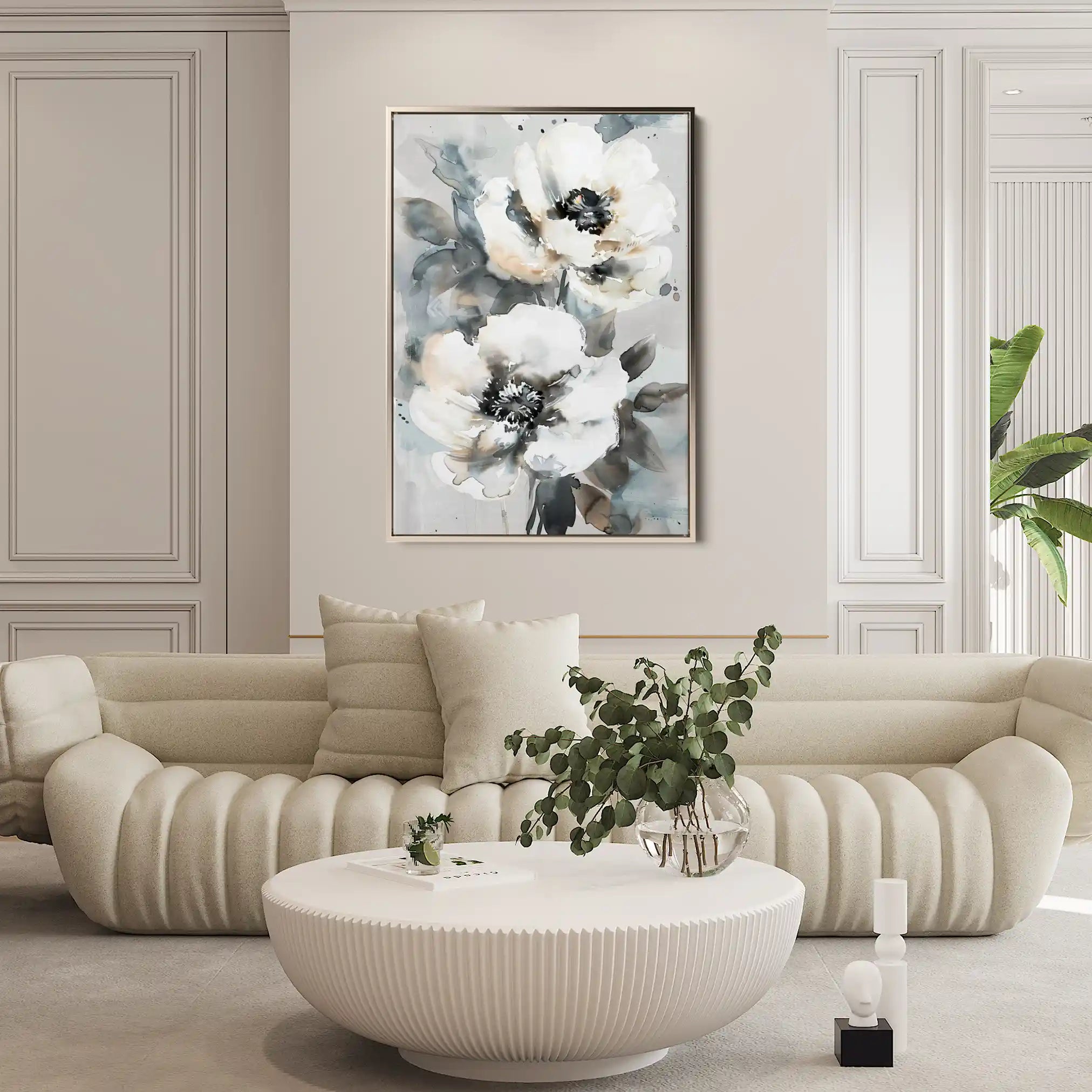 Modern wall art with quiet luxury. Museum-grade printing on 410gsm cotton canvas, set in a slim floater frame—clean, calm, ready to hang.