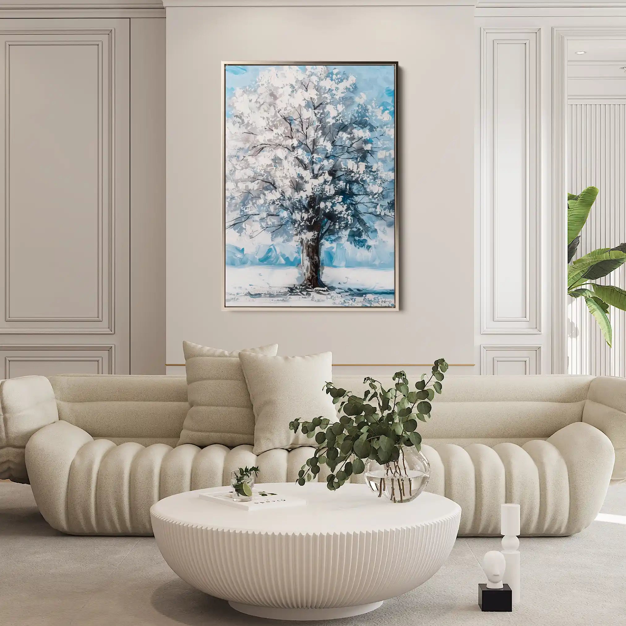 Modern wall art with quiet luxury. Museum-grade printing on 410gsm cotton canvas, set in a slim floater frame—clean, calm, ready to hang.