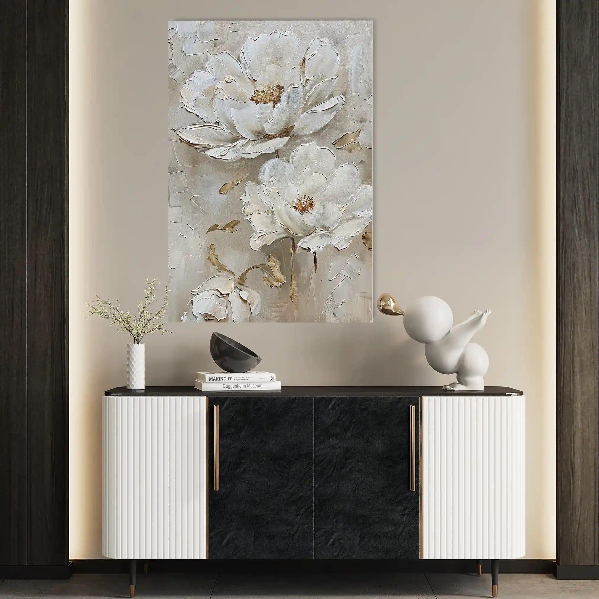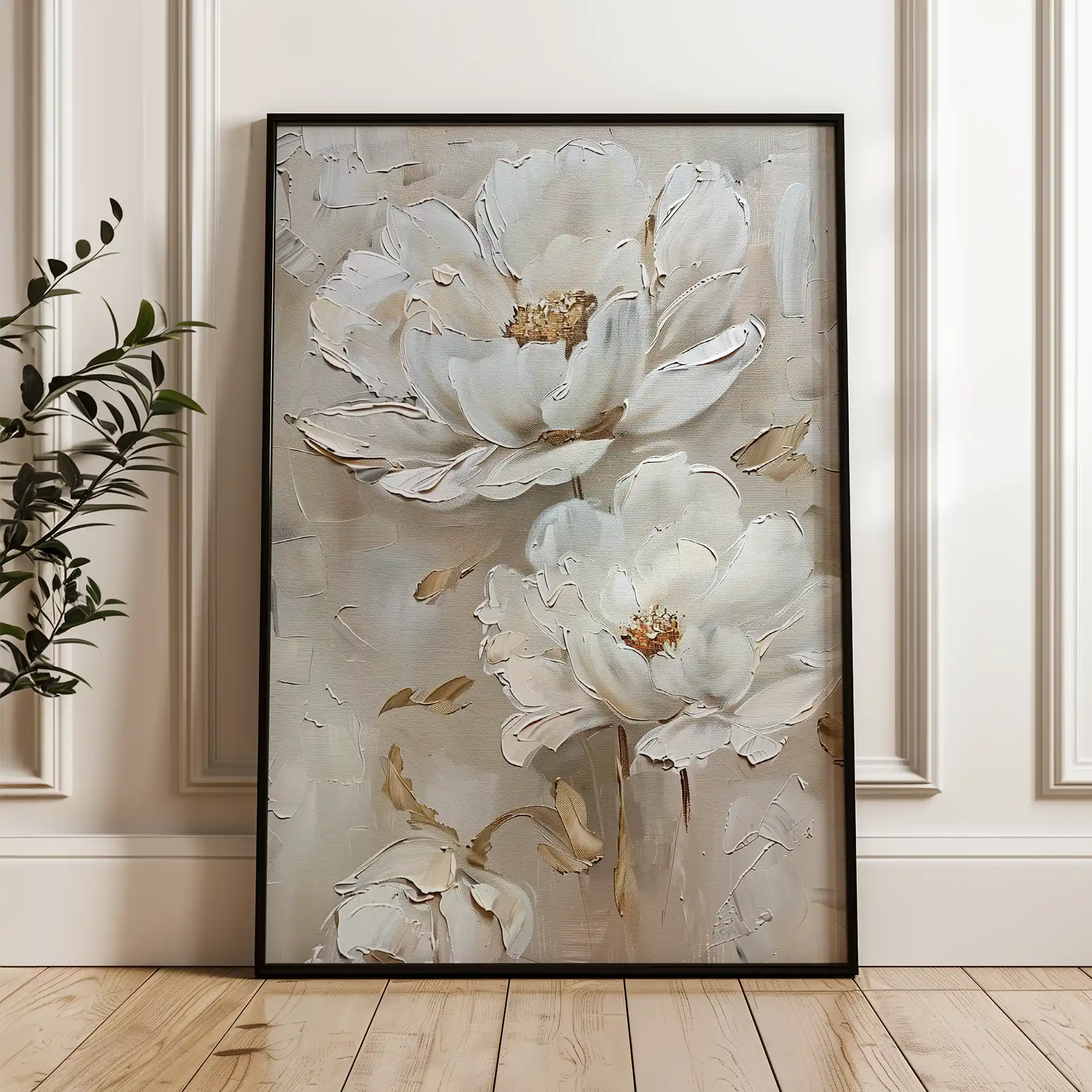 Modern wall art with quiet luxury. Museum-grade printing on 410gsm cotton canvas, set in a slim floater frame—clean, calm, ready to hang.