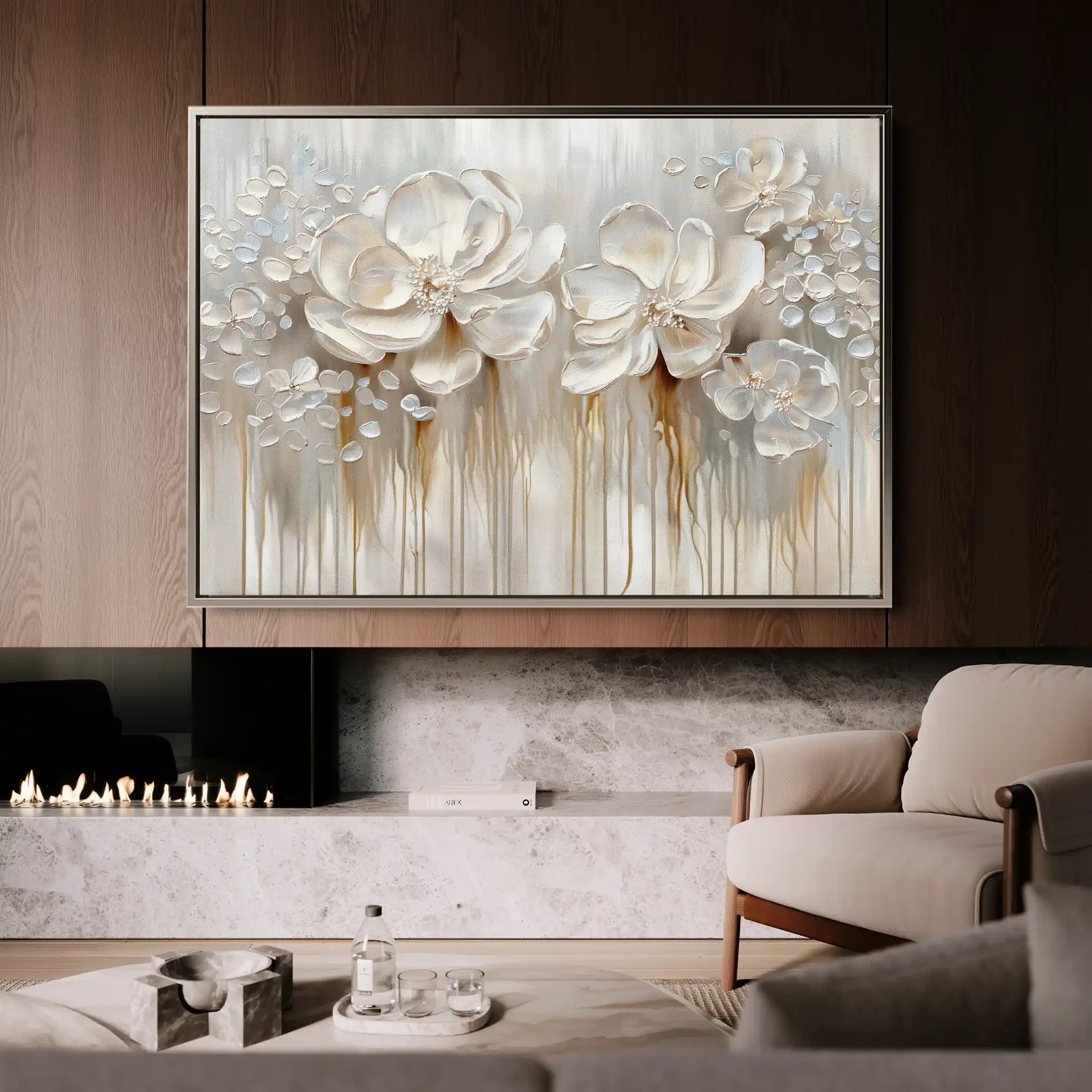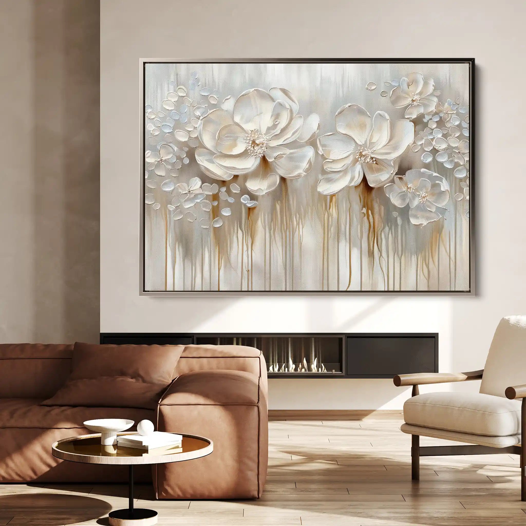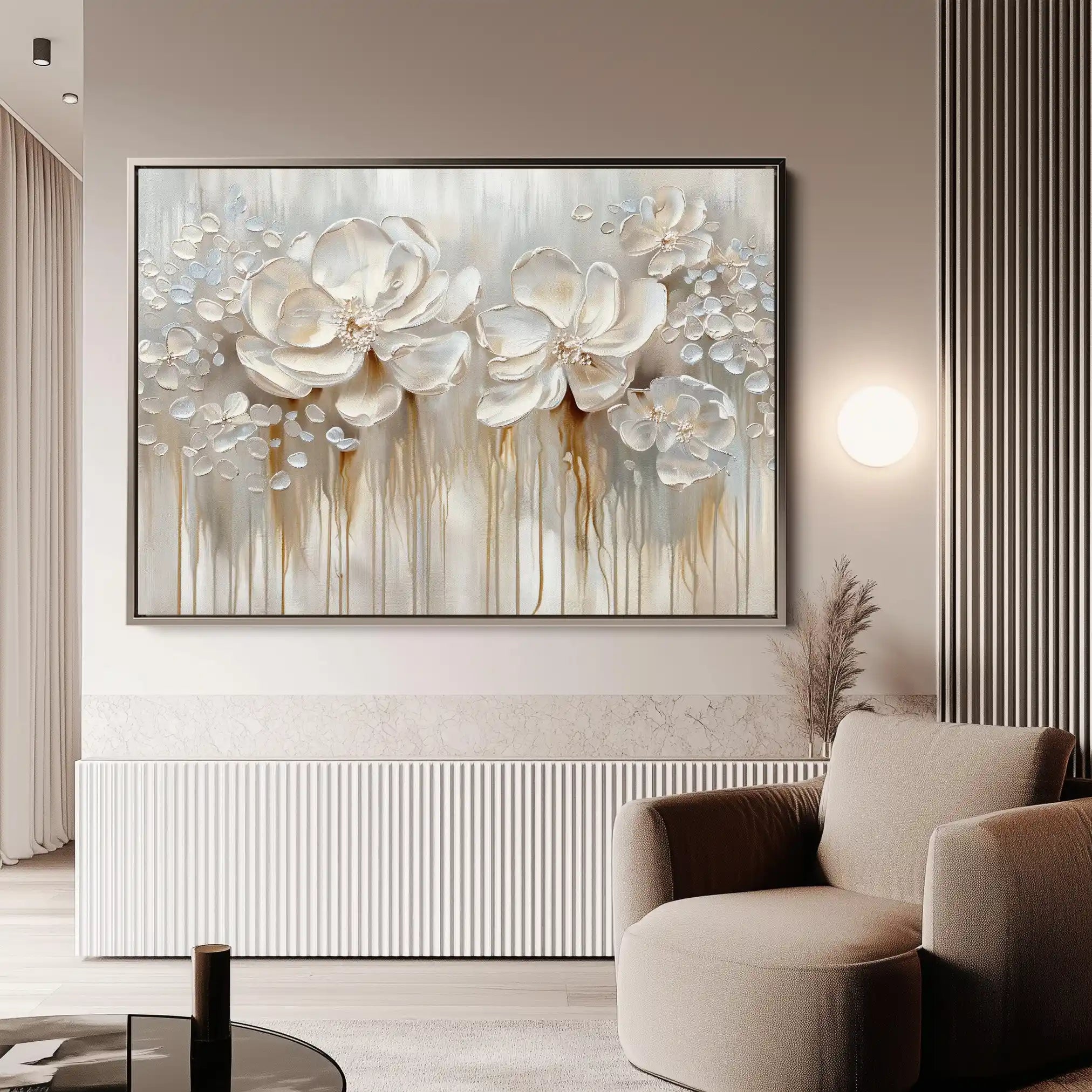 Modern wall art with quiet luxury. Museum-grade printing on 410gsm cotton canvas, set in a slim floater frame—clean, calm, ready to hang.