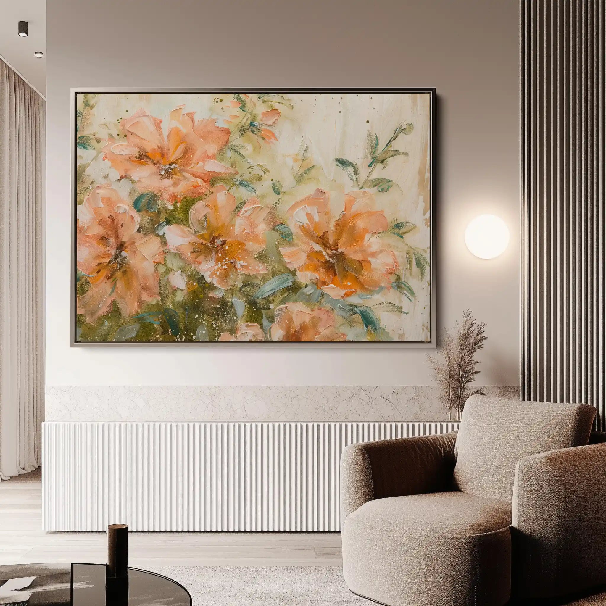 Modern wall art with quiet luxury. Museum-grade printing on 410gsm cotton canvas, set in a slim floater frame—clean, calm, ready to hang.