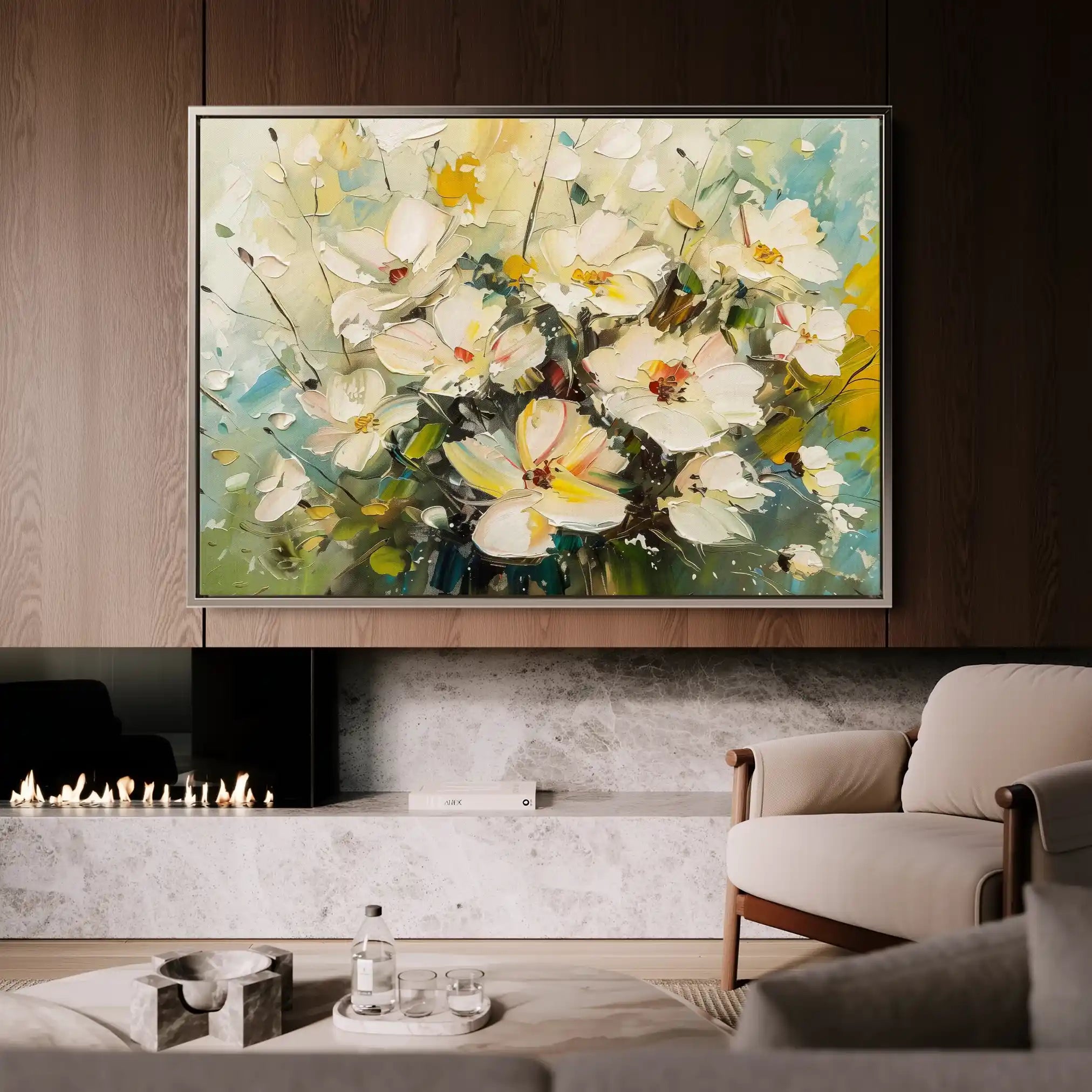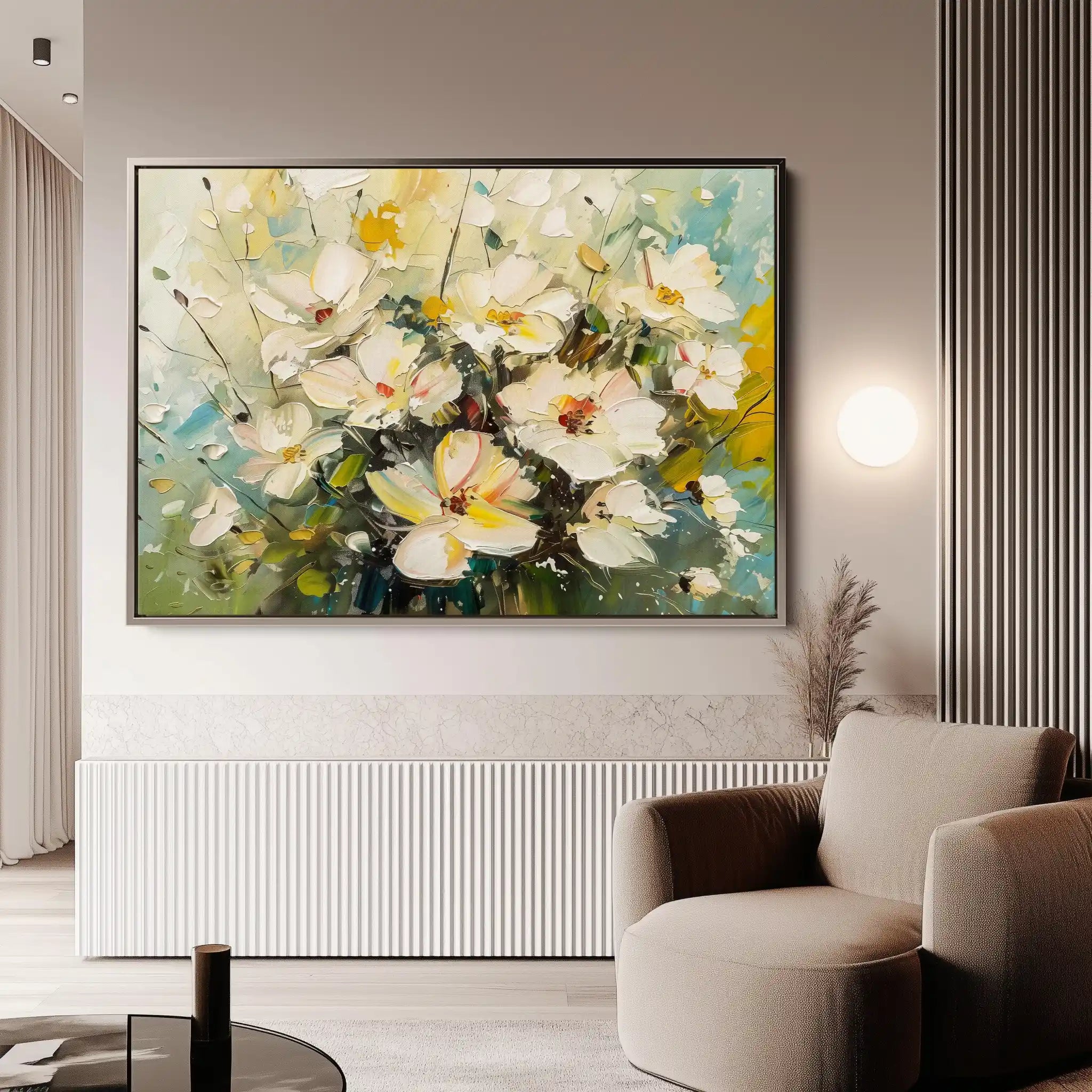 Modern wall art with quiet luxury. Museum-grade printing on 410gsm cotton canvas, set in a slim floater frame—clean, calm, ready to hang.