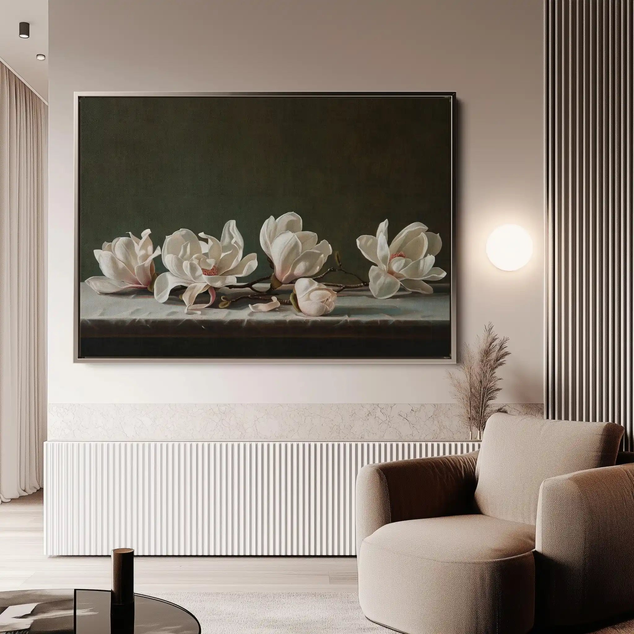 Modern wall art with quiet luxury. Museum-grade printing on 410gsm cotton canvas, set in a slim floater frame—clean, calm, ready to hang.