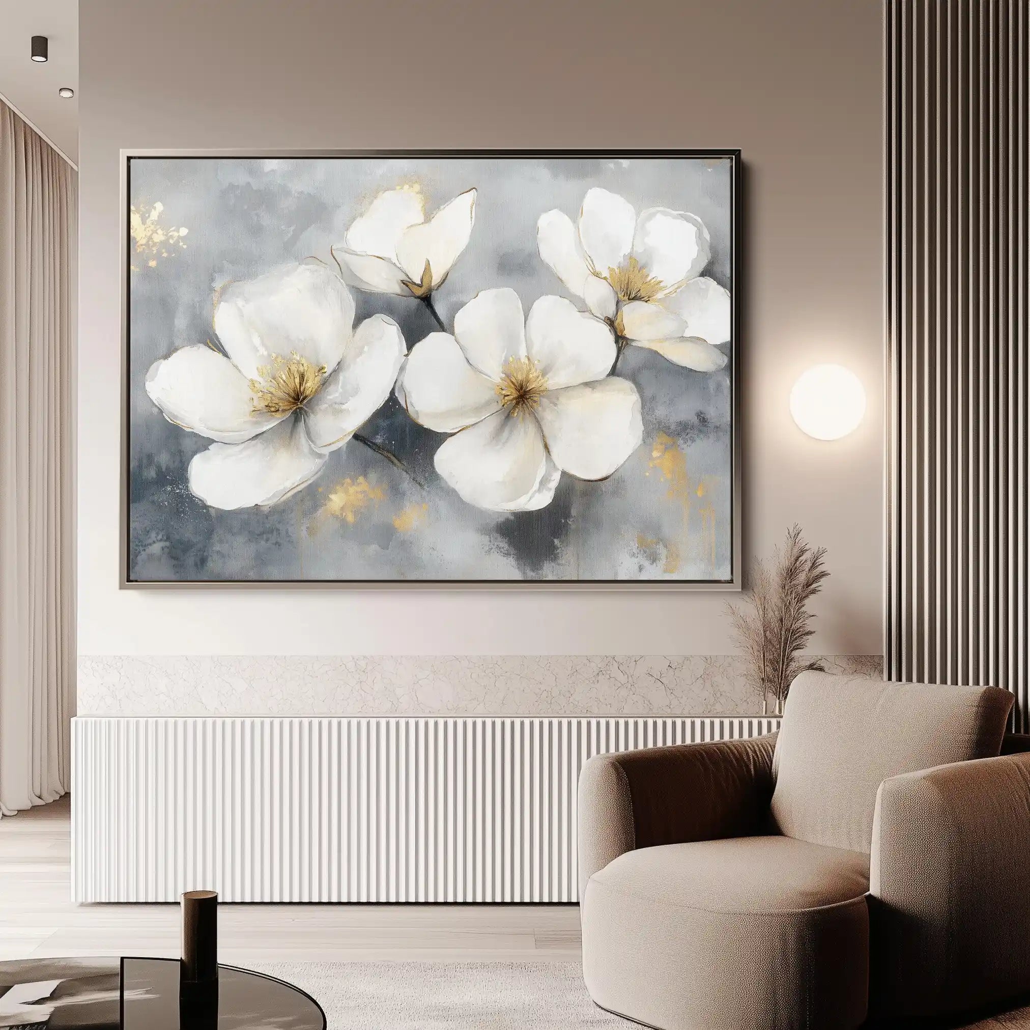 Modern wall art with quiet luxury. Museum-grade printing on 410gsm cotton canvas, set in a slim floater frame—clean, calm, ready to hang.