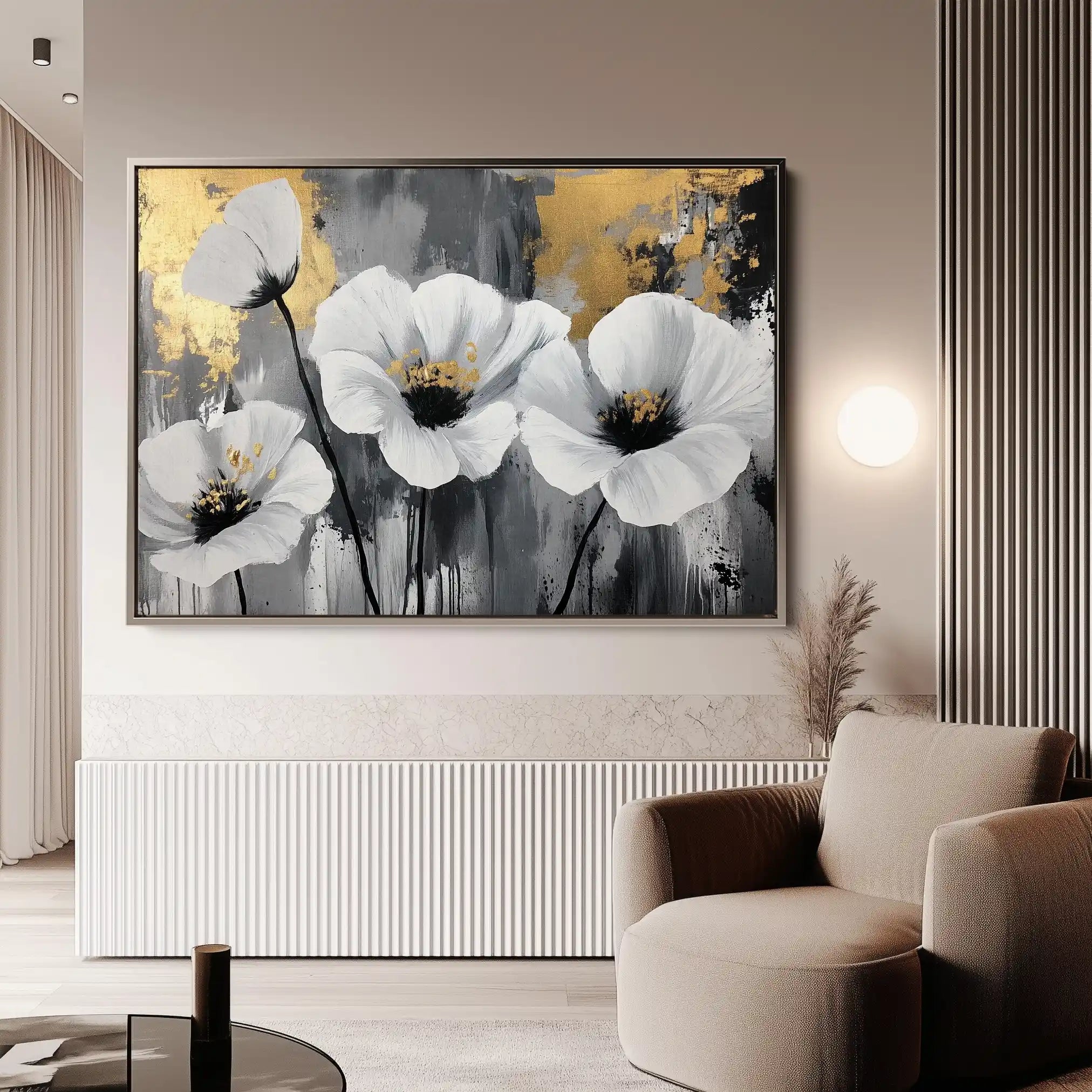 Modern wall art with quiet luxury. Museum-grade printing on 410gsm cotton canvas, set in a slim floater frame—clean, calm, ready to hang.