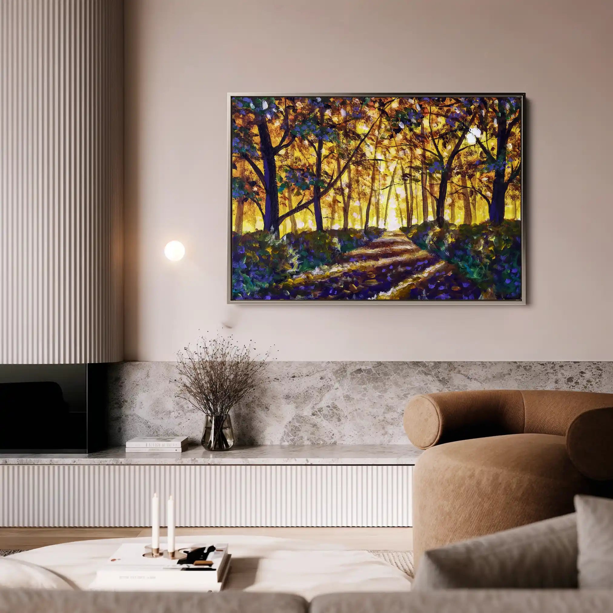 Modern wall art with quiet luxury. Museum-grade printing on 410gsm cotton canvas, set in a slim floater frame—clean, calm, ready to hang.