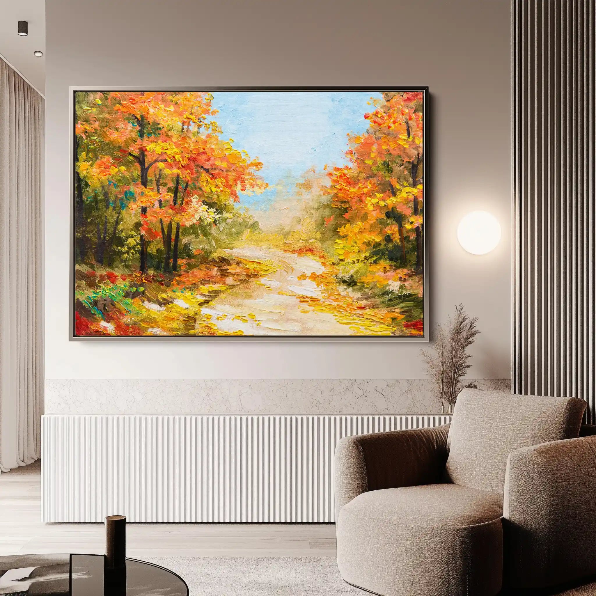 Modern wall art with quiet luxury. Museum-grade printing on 410gsm cotton canvas, set in a slim floater frame—clean, calm, ready to hang.