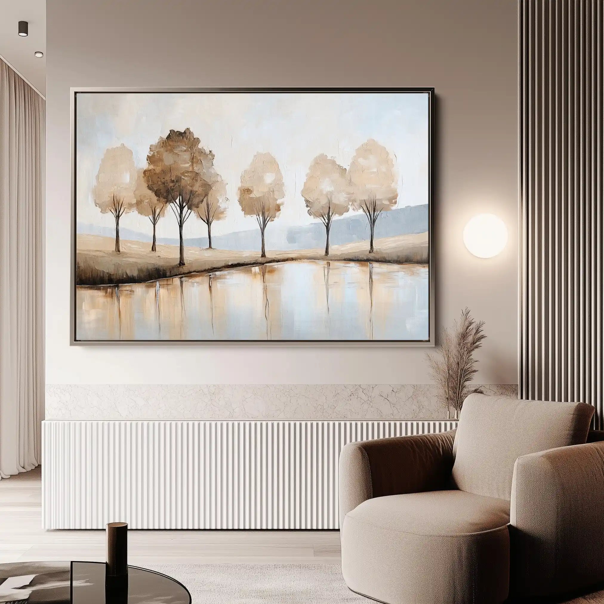 Modern wall art with quiet luxury. Museum-grade printing on 410gsm cotton canvas, set in a slim floater frame—clean, calm, ready to hang.