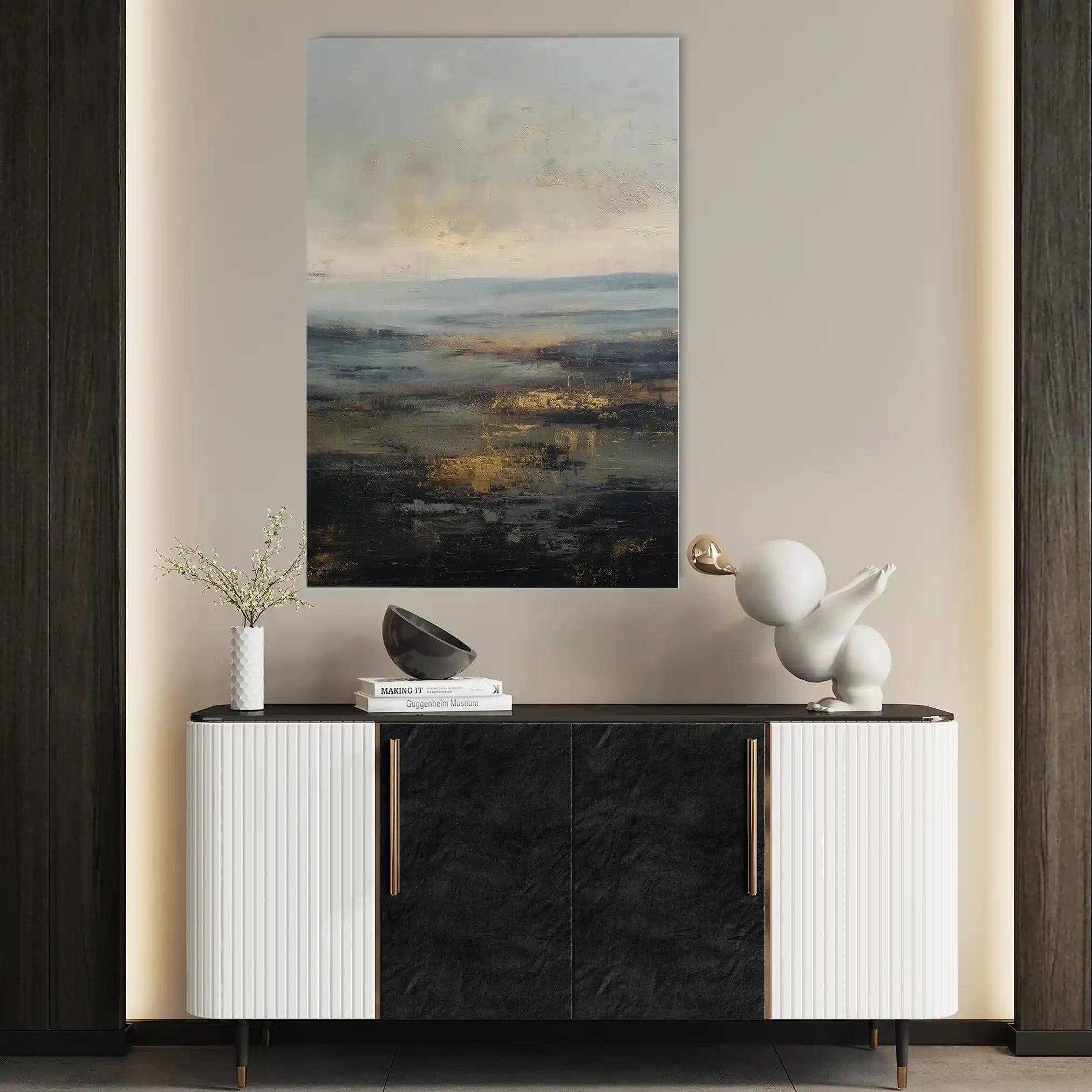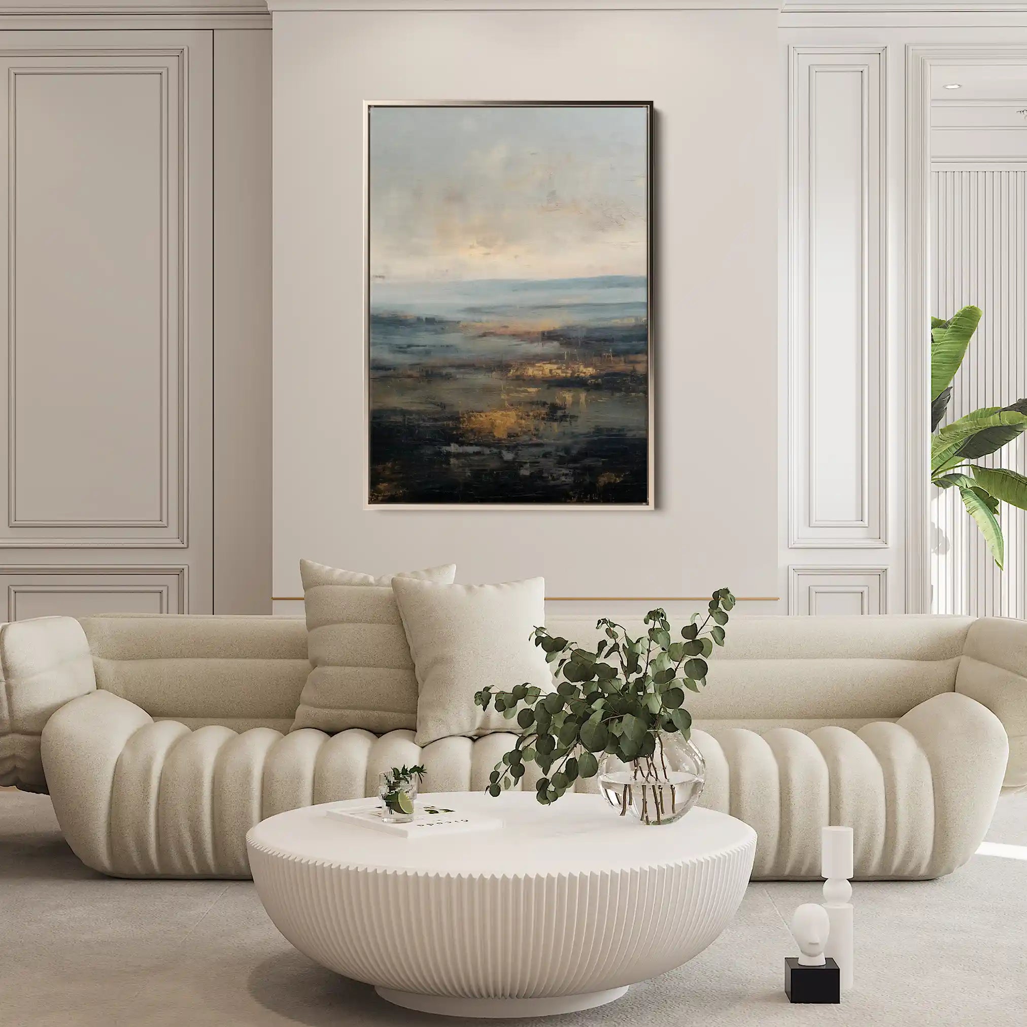 Modern wall art with quiet luxury. Museum-grade printing on 410gsm cotton canvas, set in a slim floater frame—clean, calm, ready to hang.