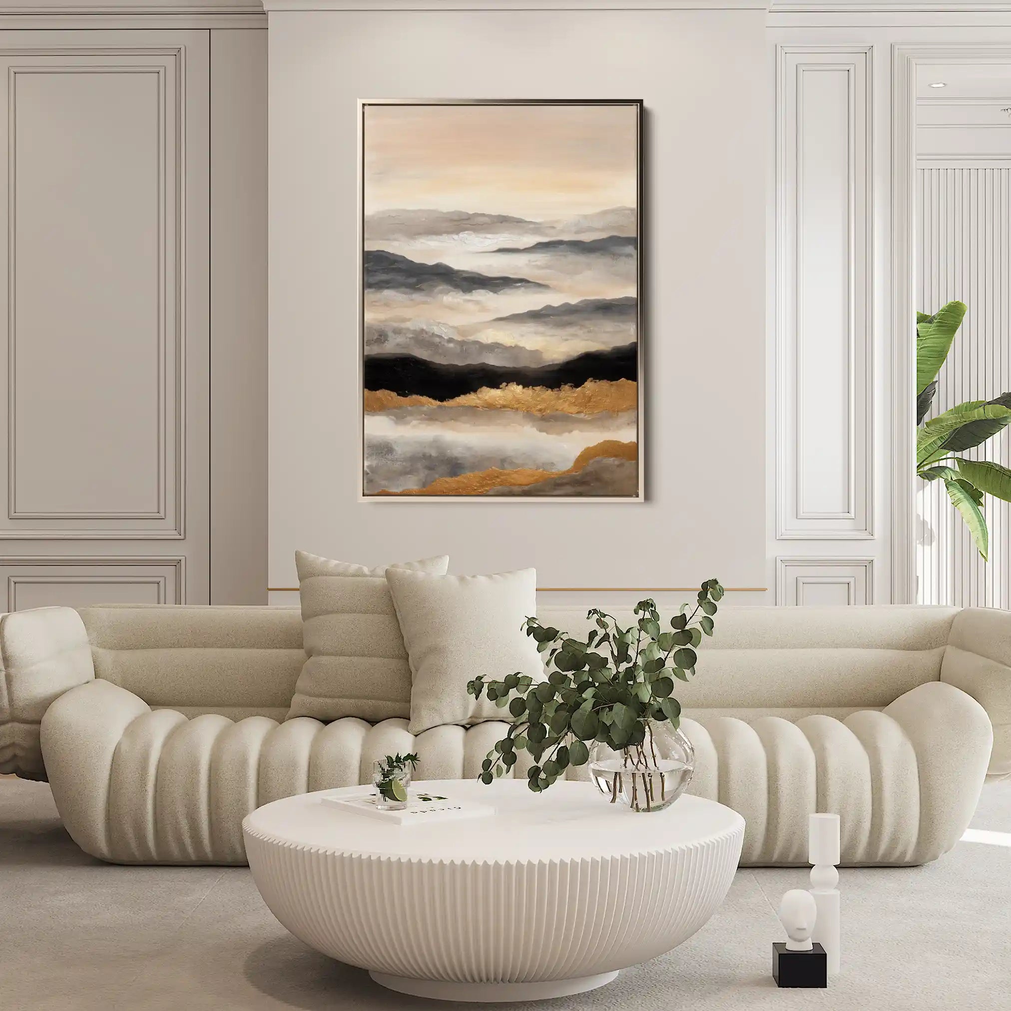 Modern wall art with quiet luxury. Museum-grade printing on 410gsm cotton canvas, set in a slim floater frame—clean, calm, ready to hang.