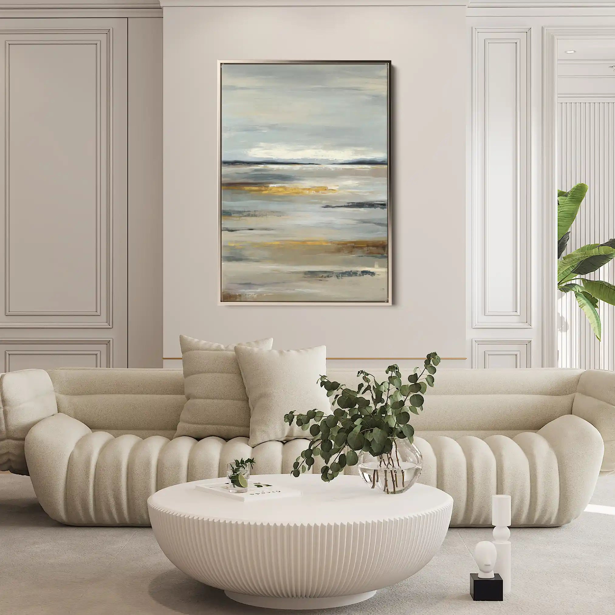 Modern wall art with quiet luxury. Museum-grade printing on 410gsm cotton canvas, set in a slim floater frame—clean, calm, ready to hang.