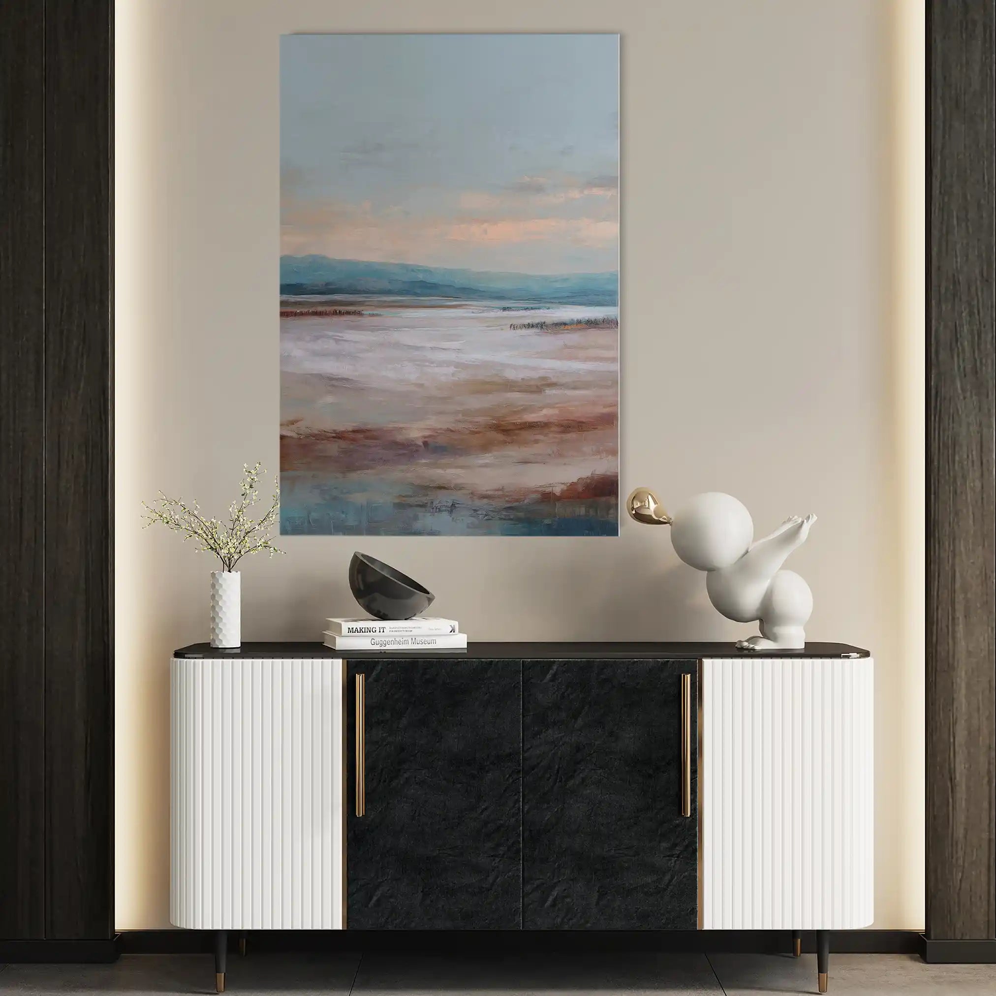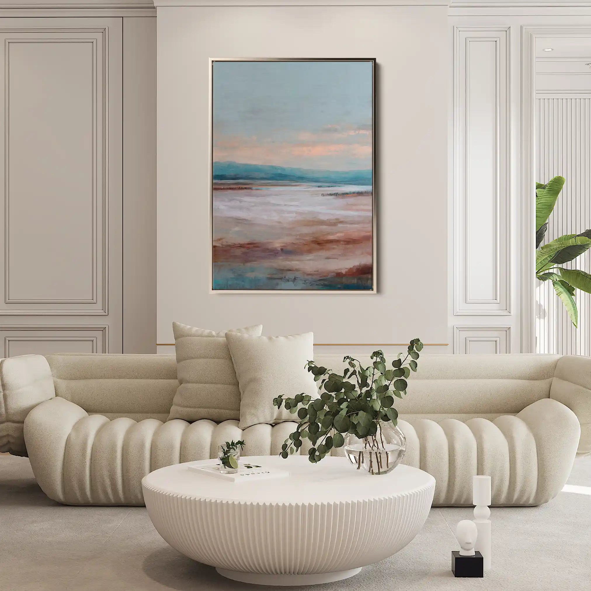 Modern wall art with quiet luxury. Museum-grade printing on 410gsm cotton canvas, set in a slim floater frame—clean, calm, ready to hang.